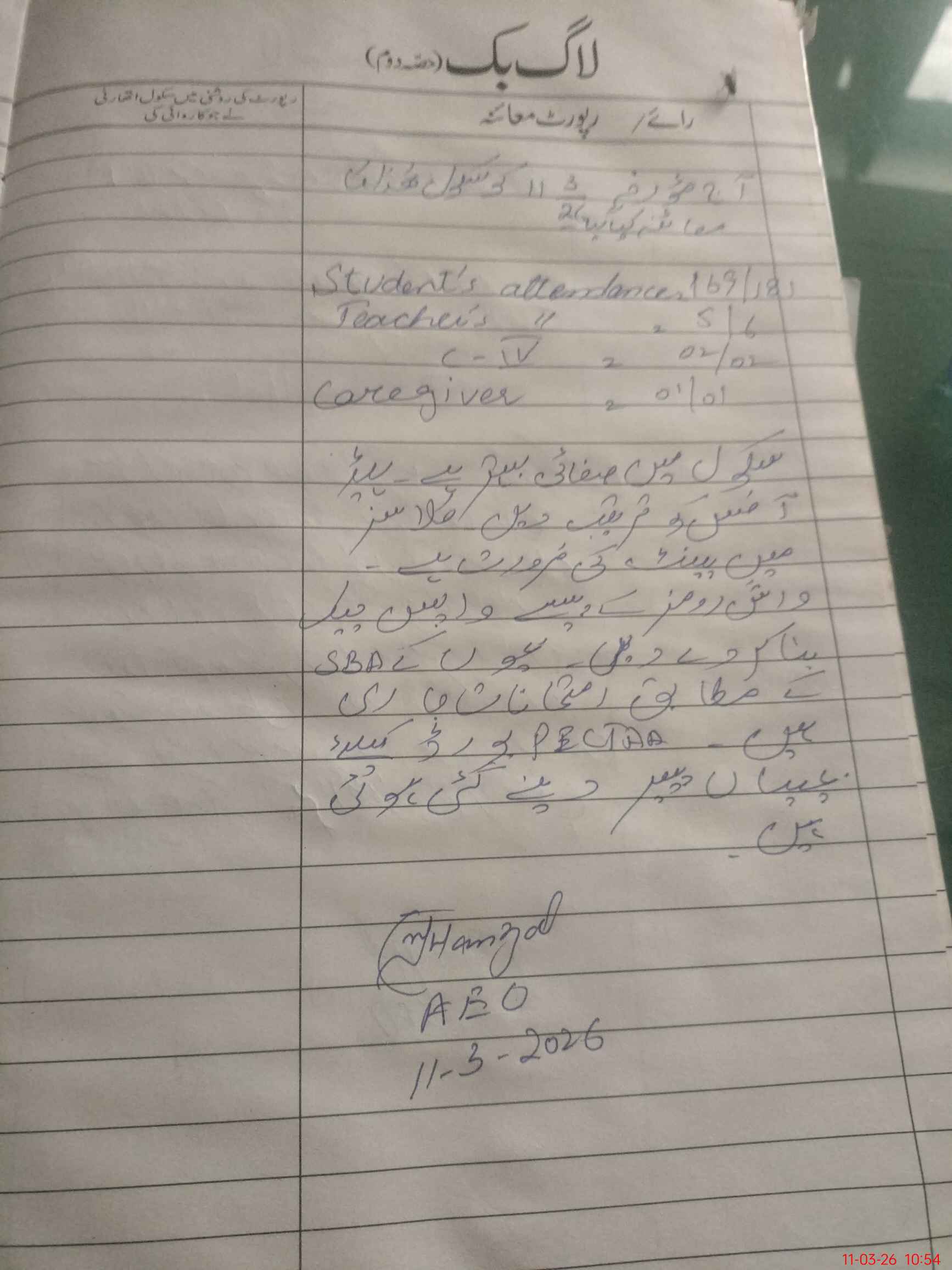 | Attendance Register | Head Teacher | MEA with School | Visit Proof |