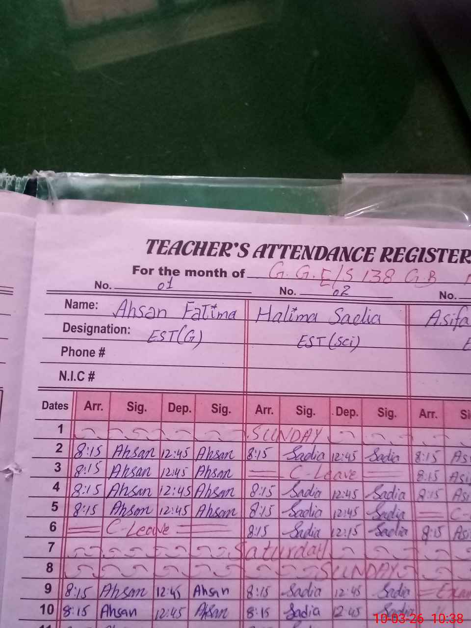 | Name: AH**** FA**** Designation: (School Headmaster's/Headmistress's) EST (GENERAL ) Phone/Cell Number: 03**** |