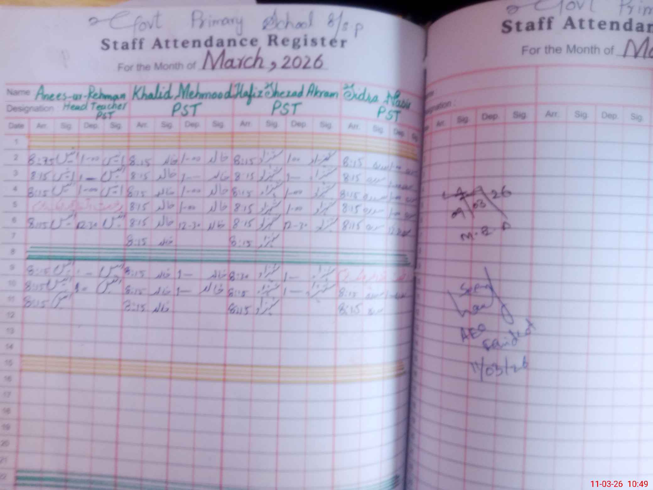 | Name: An**** Designation: (School Headmaster's/Headmistress's) PST Phone/Cell Number: 03**** |
