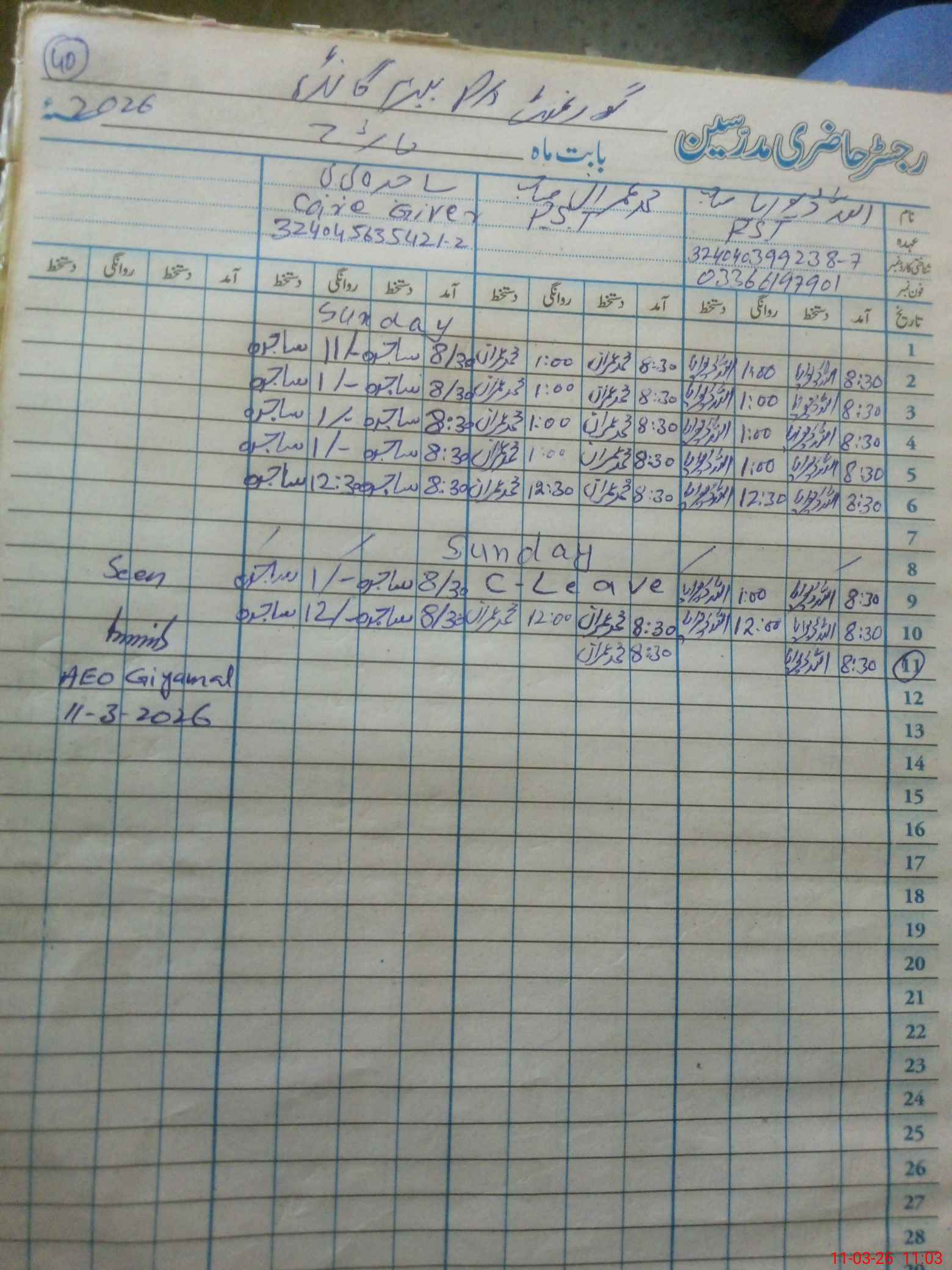 | Name: MU**** Ha**** Designation: (School Headmaster's/Headmistress's) PST HEADMASTER Phone/Cell Number: 03**** |