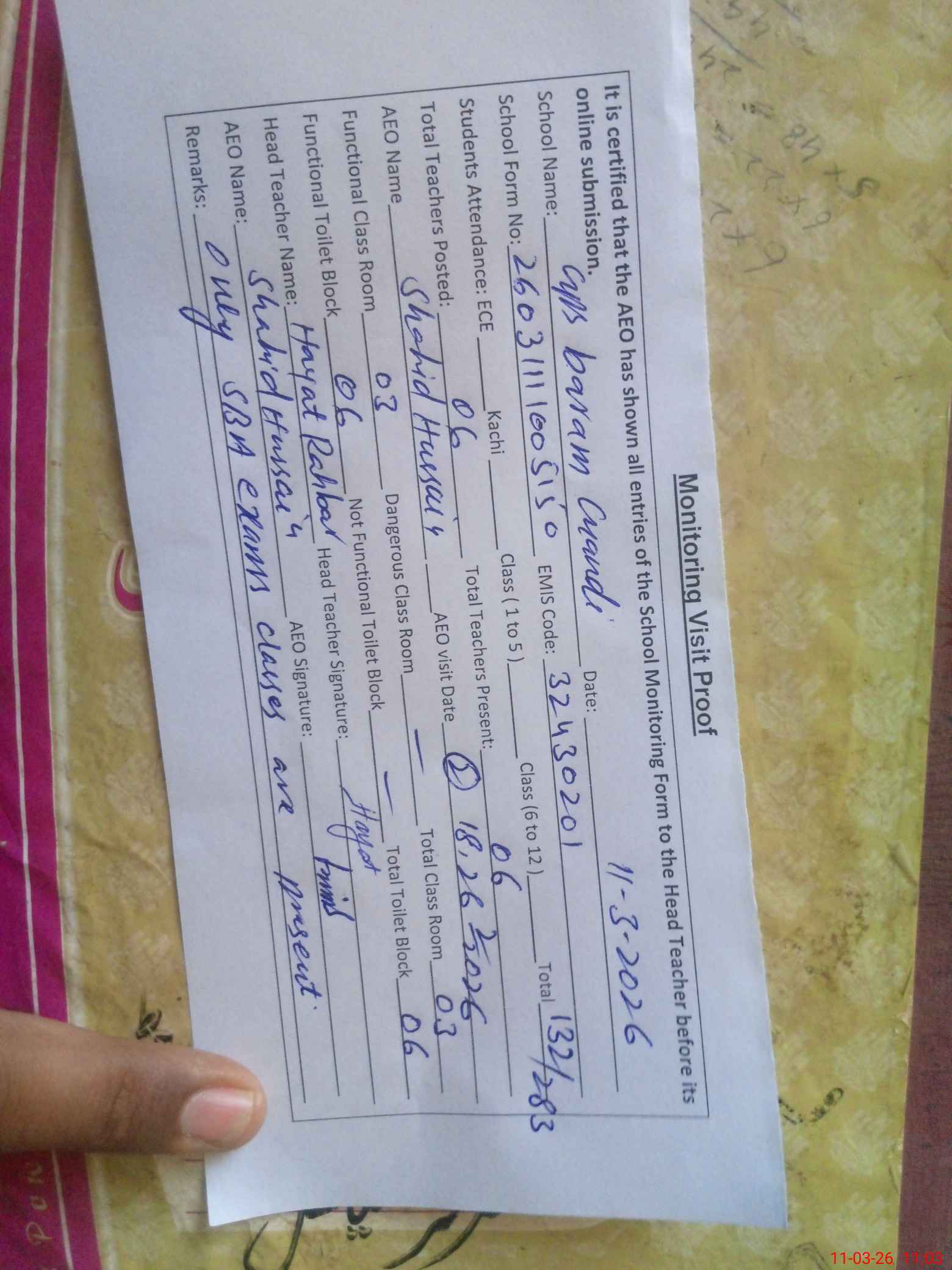 | EMIS Code: 32430201 | Name of School: GPS BARAM GANDI | |||