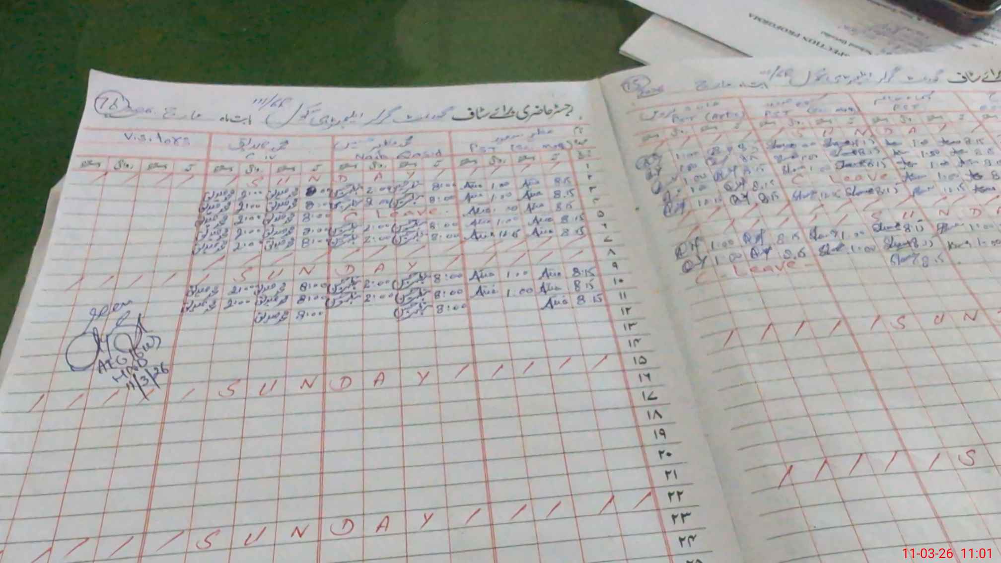 | CNIC | Full Name | Designation | R/C | Absence During Last Calender Month |