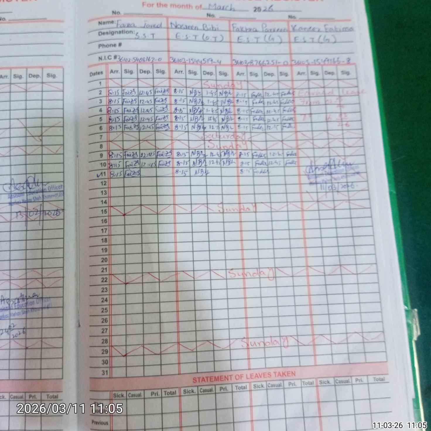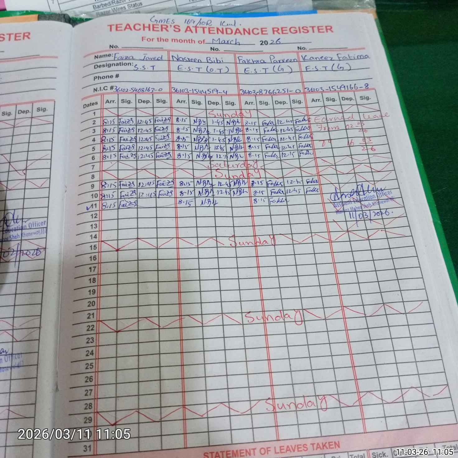| CNIC | Full Name | Designation | R/C | Absence During Last Calender Month |