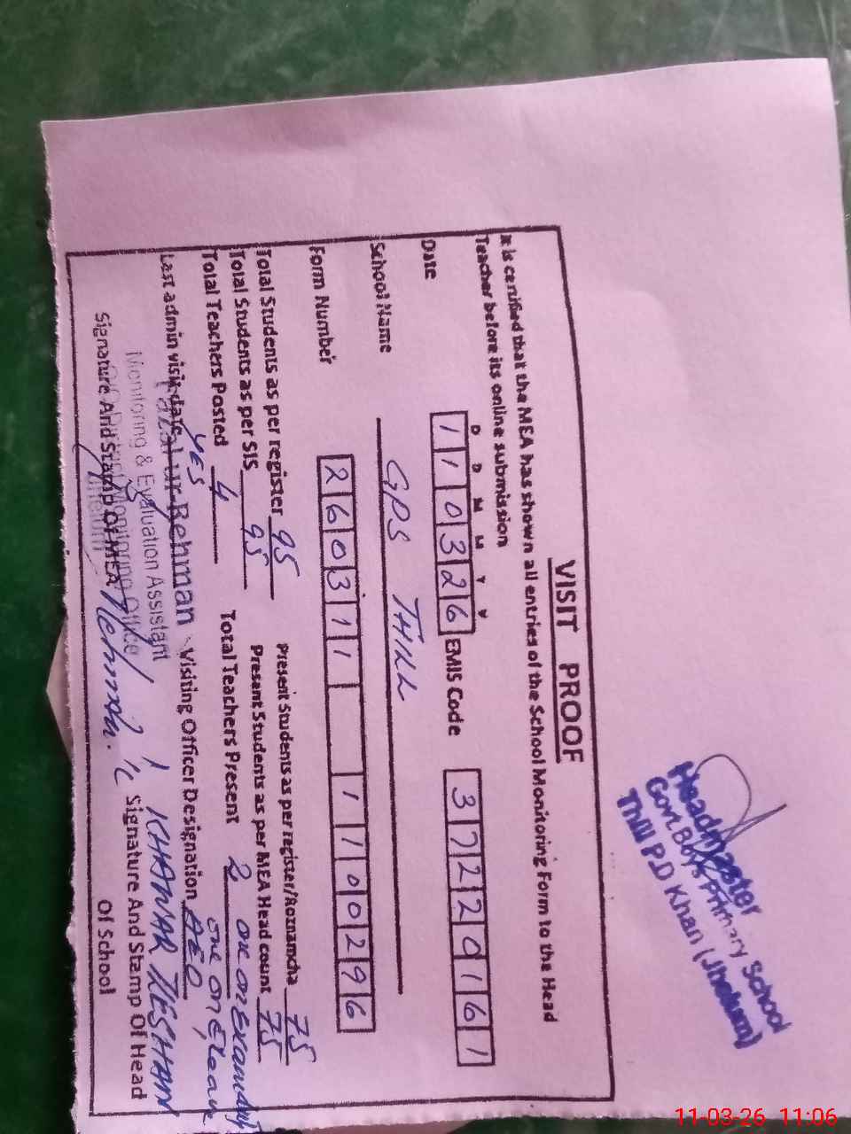 | EMIS Code: 37220161 | Name of School: GPS THILL | |||
