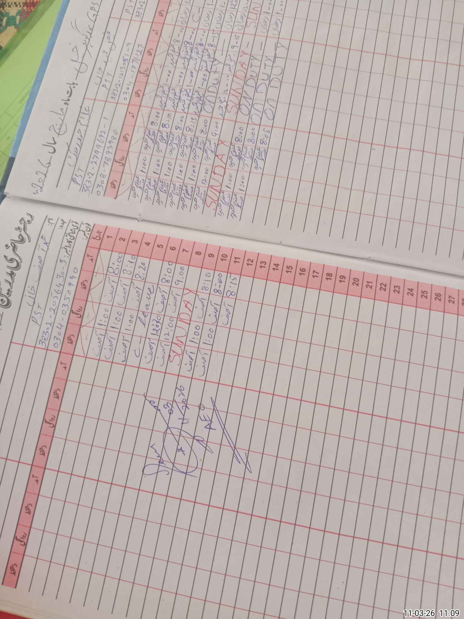 | 38**** | Fa**** Ha**** Kh**** | PST Arts | Regular | 0 | 0 | 0 | 0 | 0 | 0 | 0 | 0 | 0 | Exam Duty |