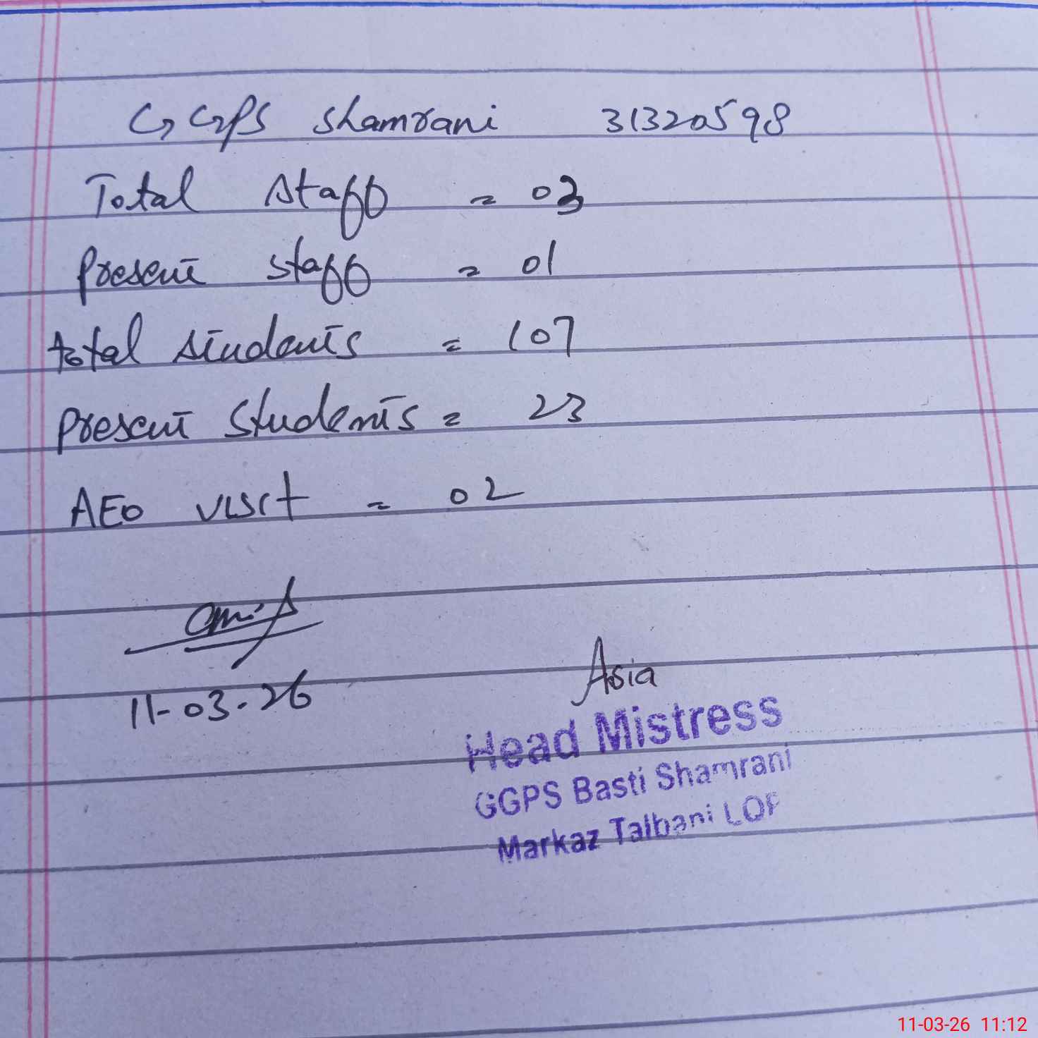 | EMIS Code: 31320598 | Name of School: GGPS BASTI SHAMRANI | |||
