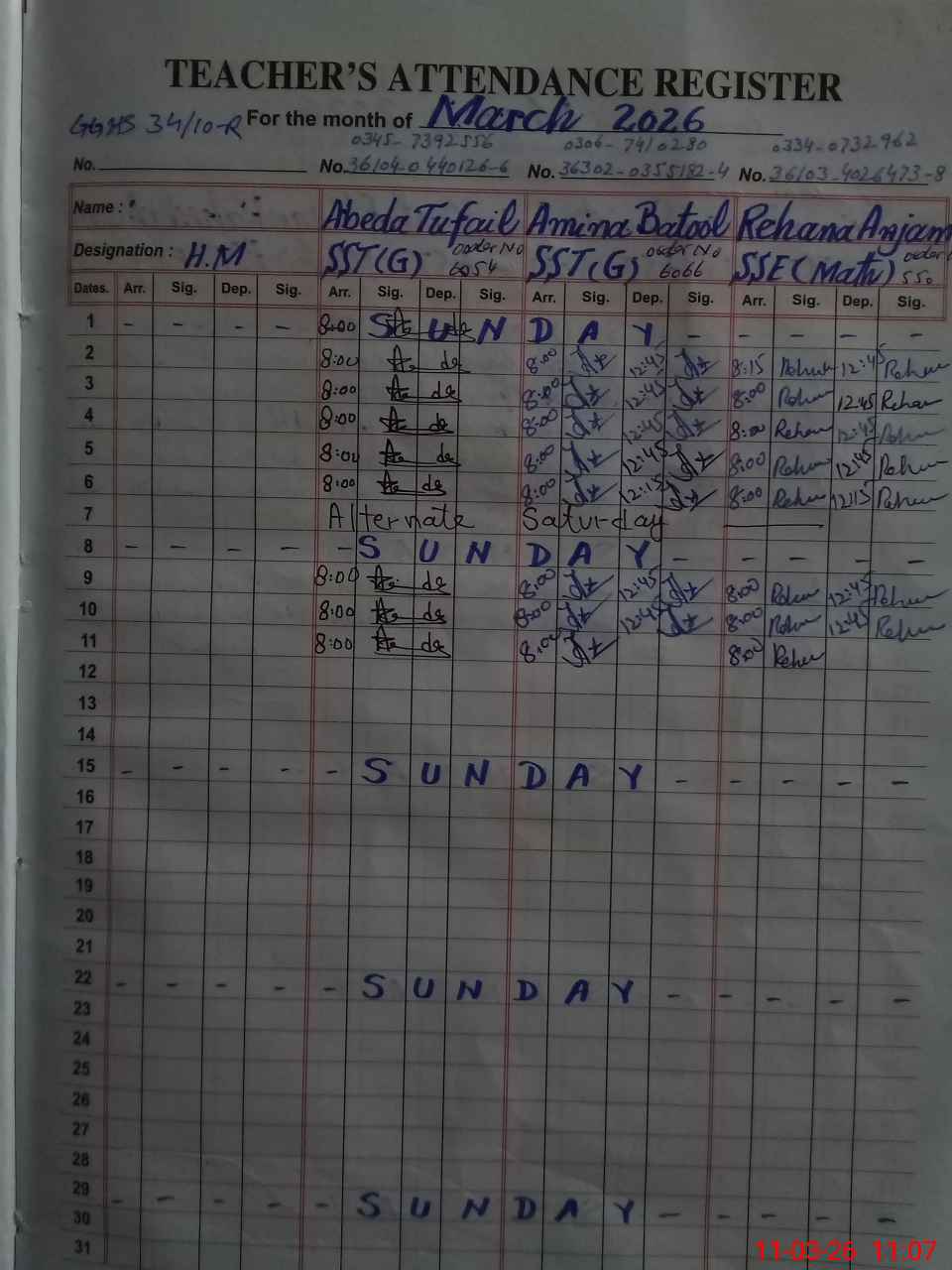 | Name: AB**** TU**** Designation: (School Headmaster's/Headmistress's) SST G Phone/Cell Number: 03**** |