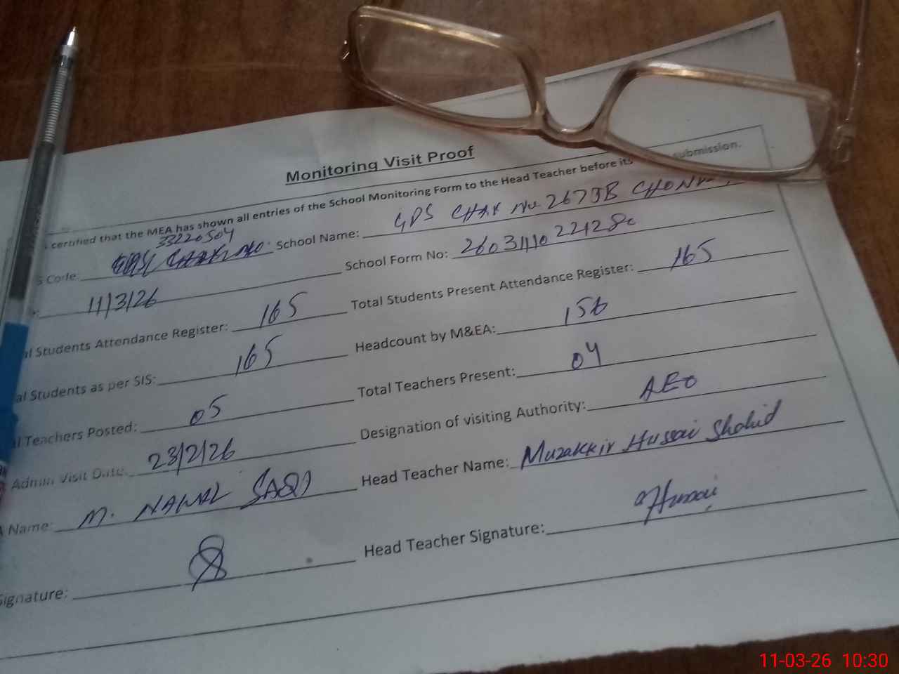 | EMIS Code: 33220504 | Name of School: GPS CHAK NO 267 JB CHONDRA | |||