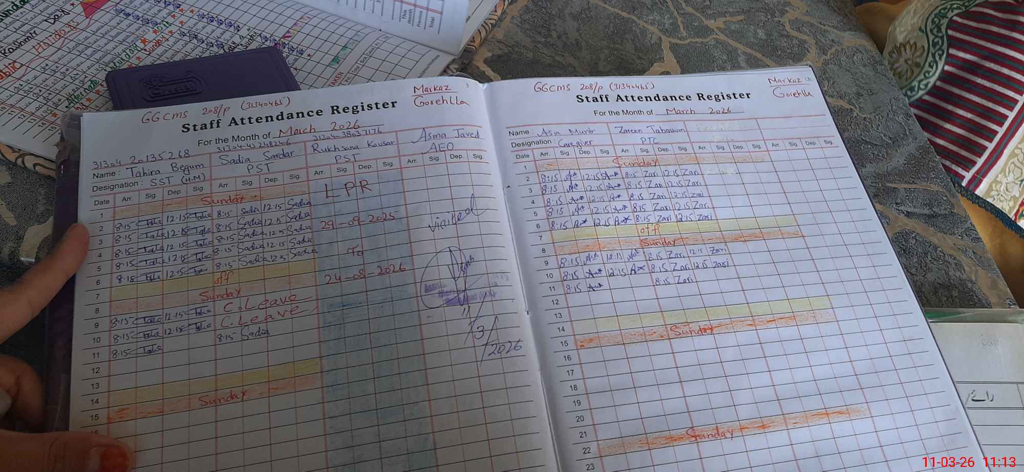 | CNIC | Full Name | Designation | R/C | Absence During Last Calender Month |