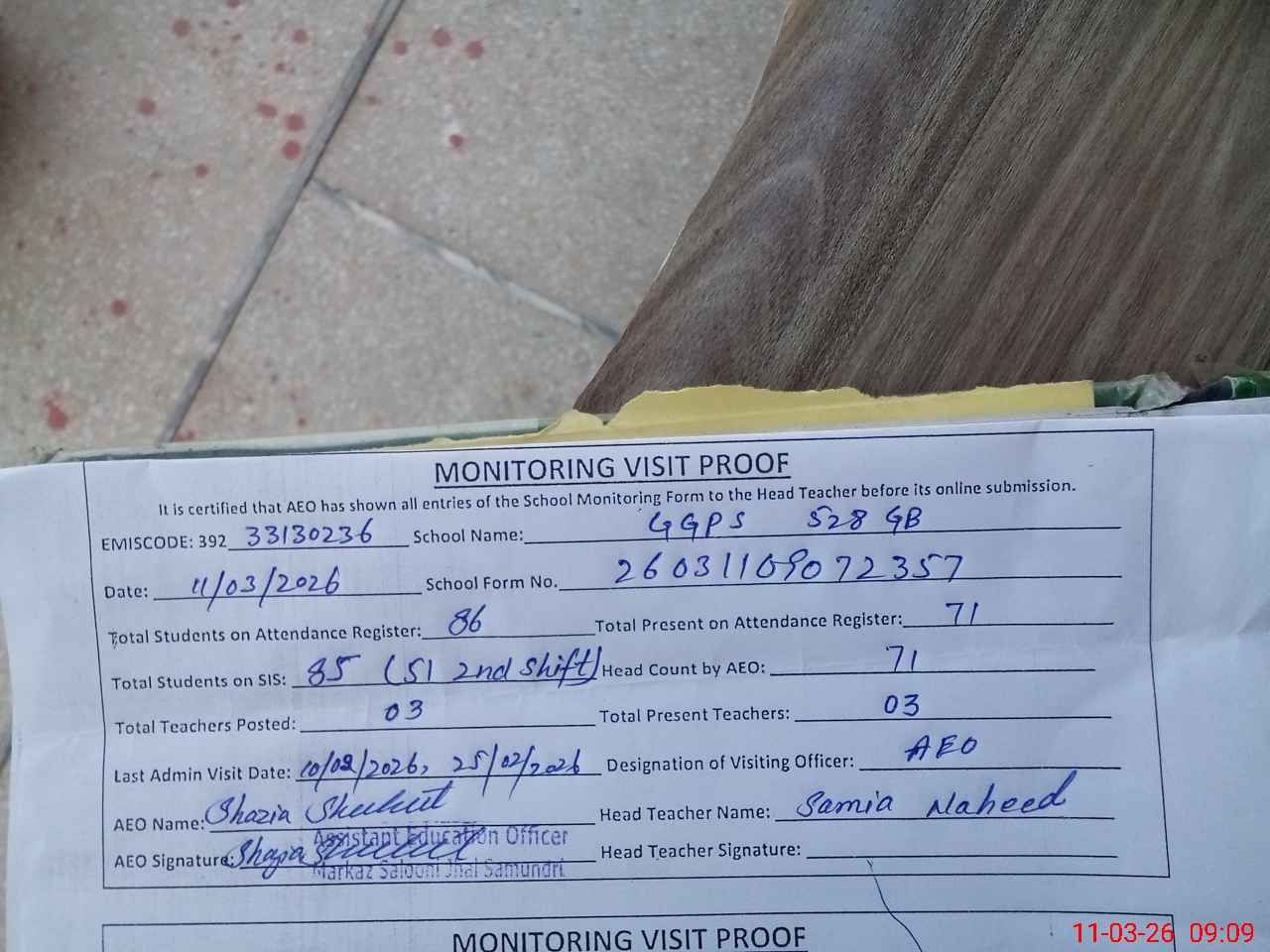 | EMIS Code: 33130236 | Name of School: GGPS CHAK 528 GB SAMUNDRI | |||