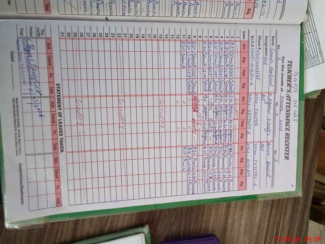 | Name: SA**** NA**** Designation: (School Headmaster's/Headmistress's) PTC Phone/Cell Number: 03**** |