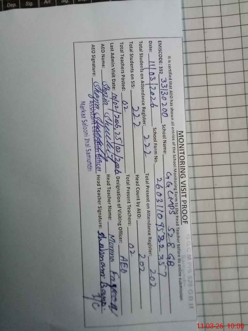 | EMIS Code: 33130200 | Name of School: GGCMS CHAK 528 GB MANOPUR | |||