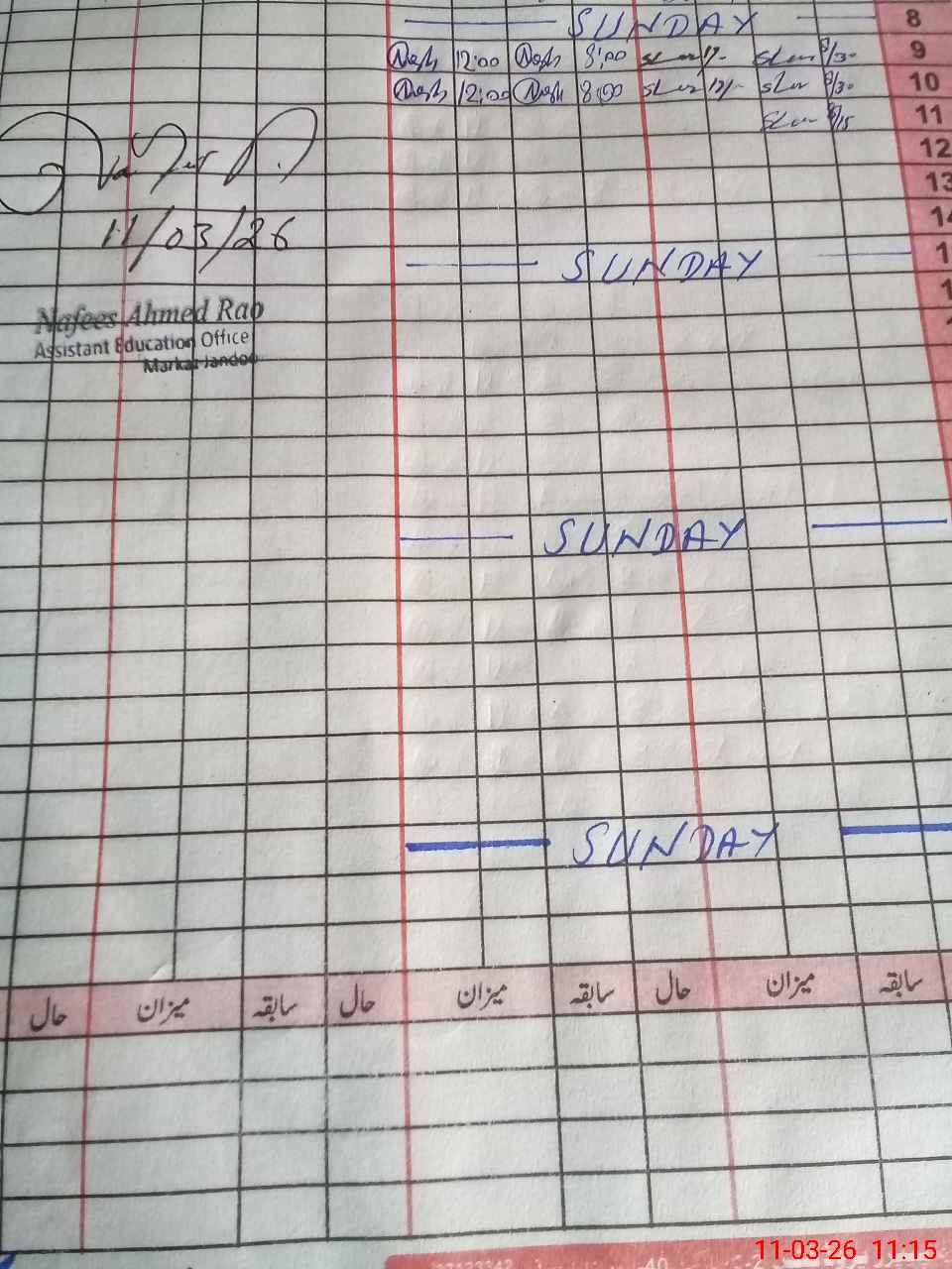 | Monitoring Date: 11-03-2026 | Start Time: 11-03-2026 11:10 AM | End Time: 11-03-2026 11:17 AM | Name of MEA: Na**** Ah**** | |