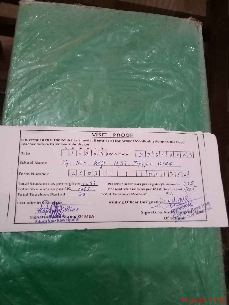 | EMIS Code: 37360004 | Name of School: GHSS MC GUJAR KHAN | |||