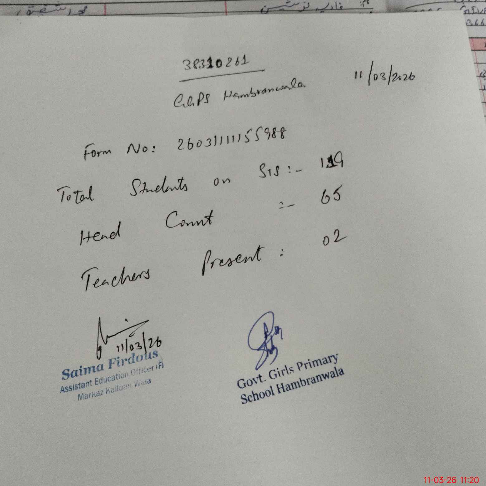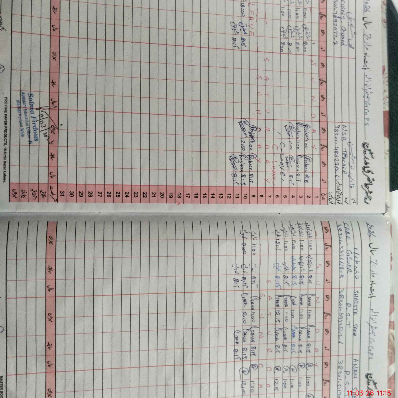 | Name: An**** Sh**** Designation: (School Headmaster's/Headmistress's) PST Phone/Cell Number: 03**** |