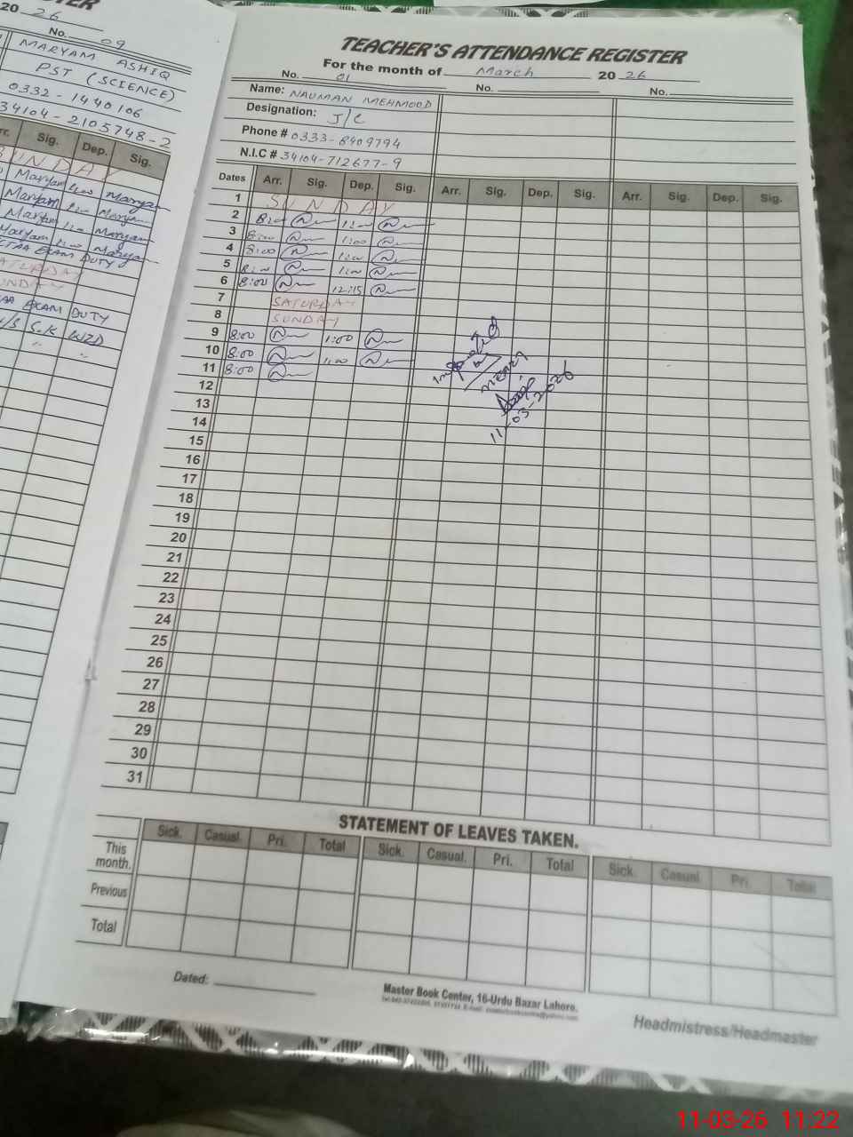 | Name: NA**** HA**** Designation: (School Headmaster's/Headmistress's) S.S.T.arts Phone/Cell Number: 03**** |
