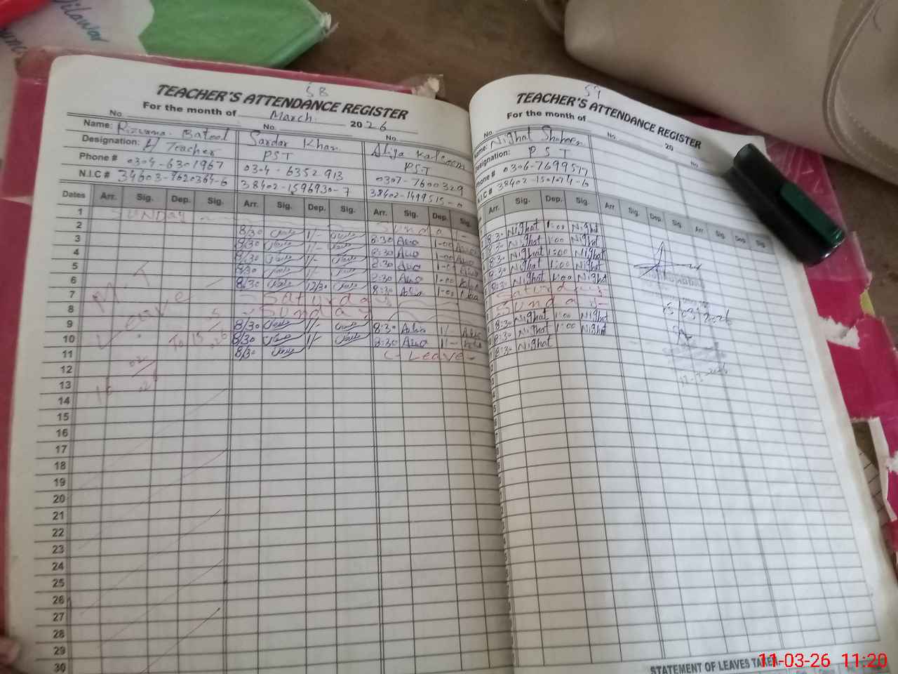 | CNIC | Full Name | Designation | R/C | Absence During Last Calender Month |