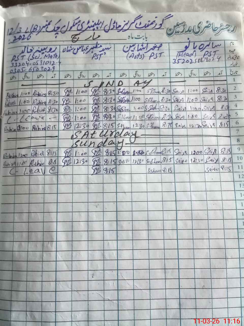 | Name: SA**** BA**** Designation: (School Headmaster's/Headmistress's) PST Phone/Cell Number: 03**** |