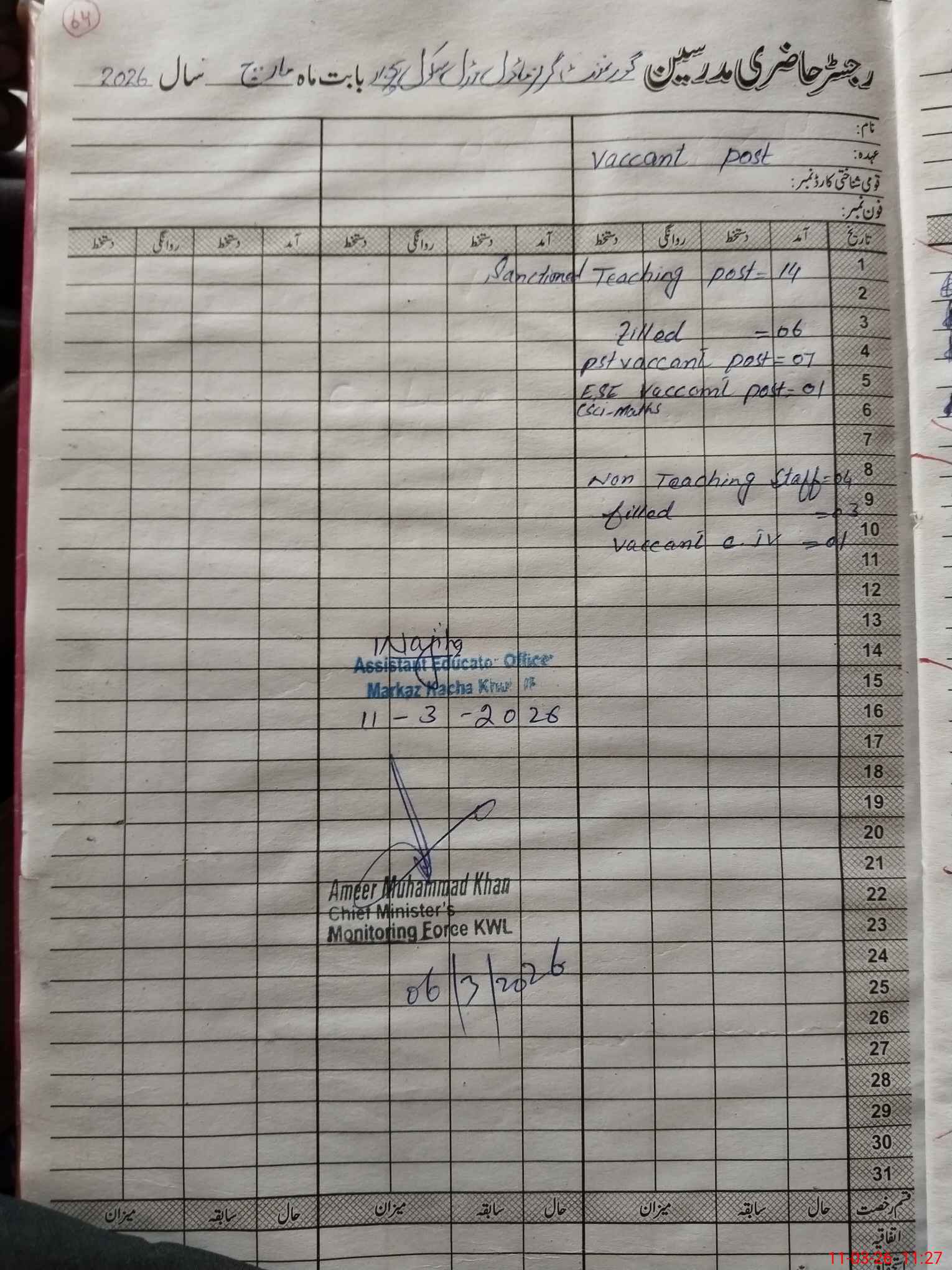 | EMIS Code: 36420454 | Name of School: GGES 15/9-R, KACHA KHUH | |||