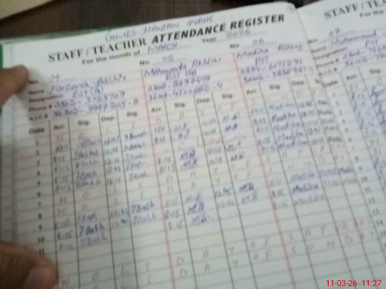 | Name: SH**** GU**** Designation: (School Headmaster's/Headmistress's) S.S.T.(G) Phone/Cell Number: 03**** |