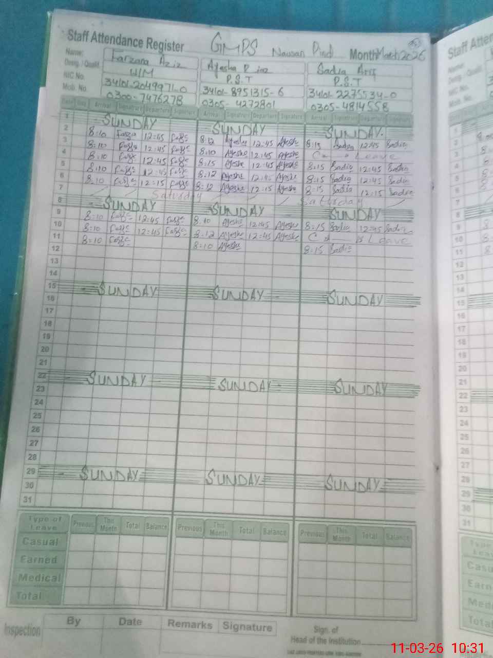 | Name: FA**** AZ**** Designation: (School Headmaster's/Headmistress's) PST Phone/Cell Number: 03**** |