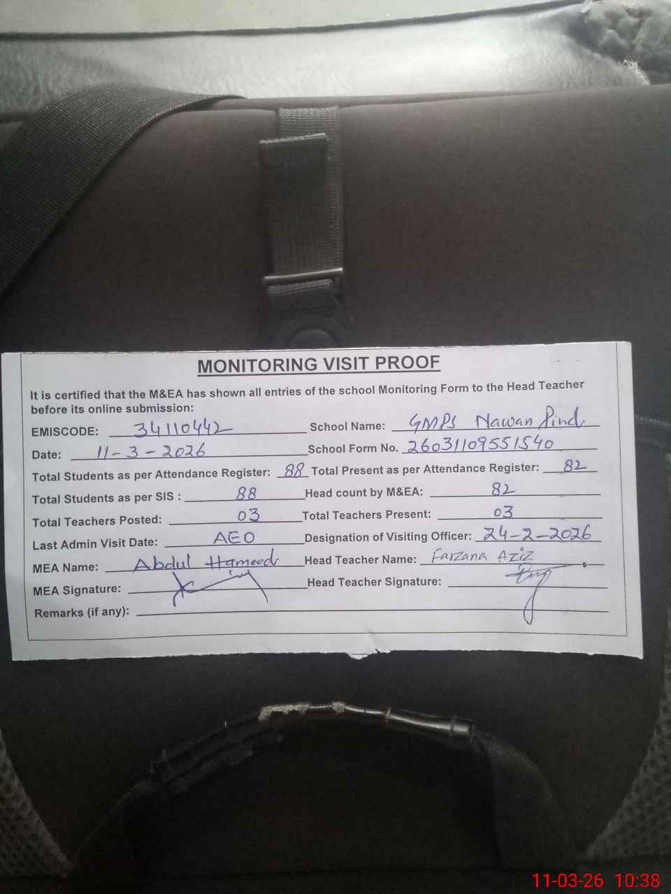 | EMIS Code: 34110442 | Name of School: GMPS NAWAN PIND | |||