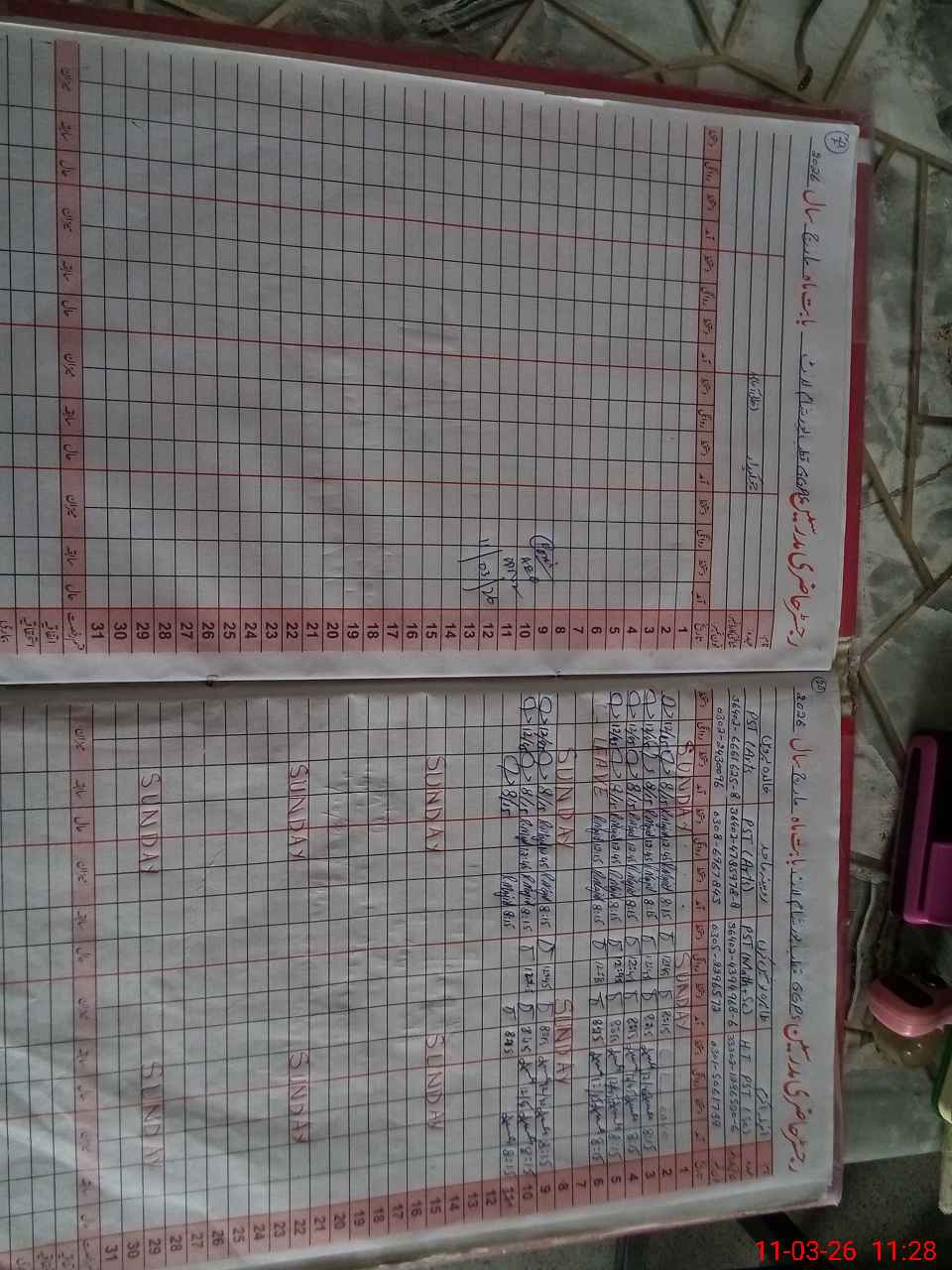 | CNIC | Full Name | Designation | R/C | Absence During Last Calender Month |