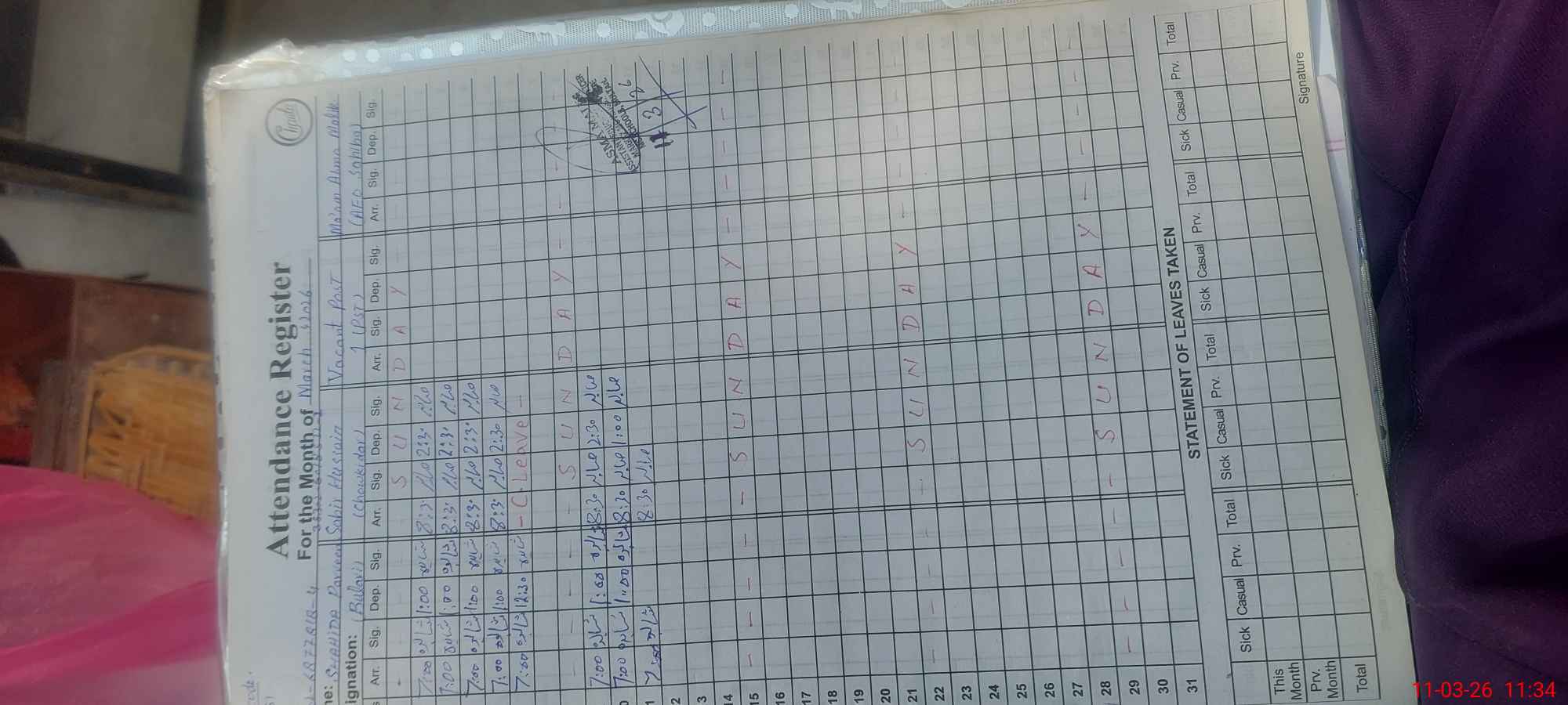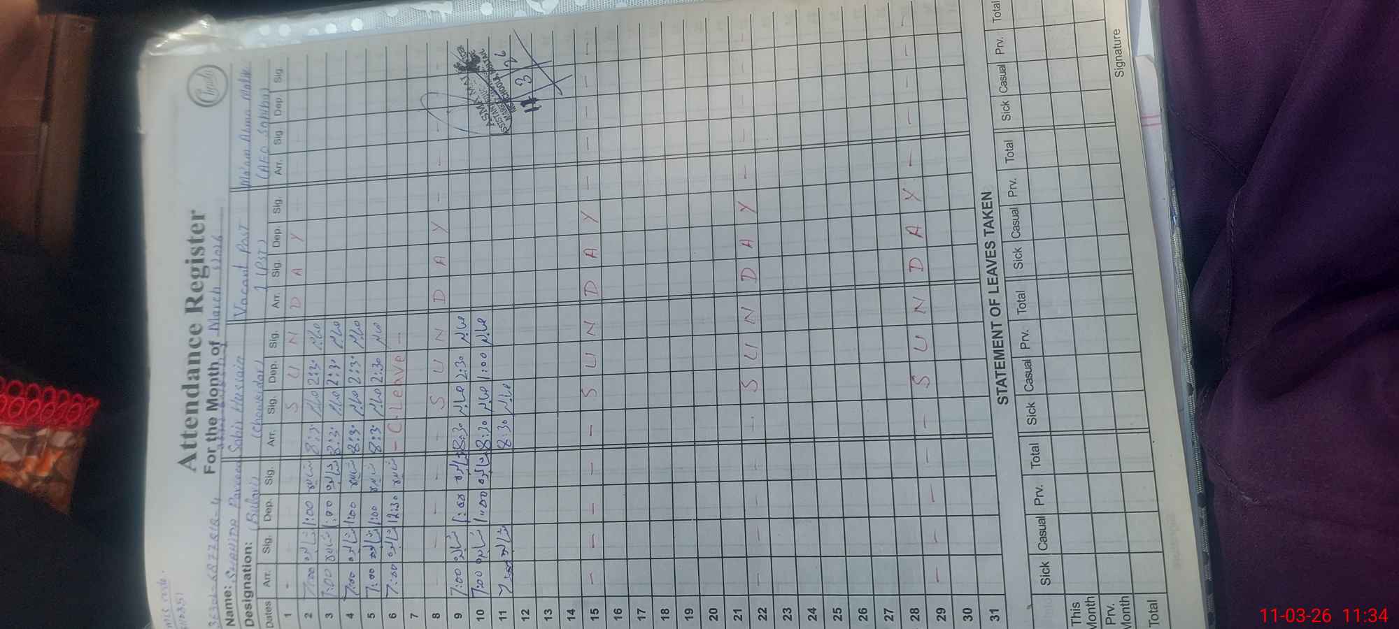 | 32**** | Sh**** Qa**** | PST Arts | Regular | 0 | 0 | 0 | 0 | 0 | 0 | 0 | 0 | 0 | Exam Duty |