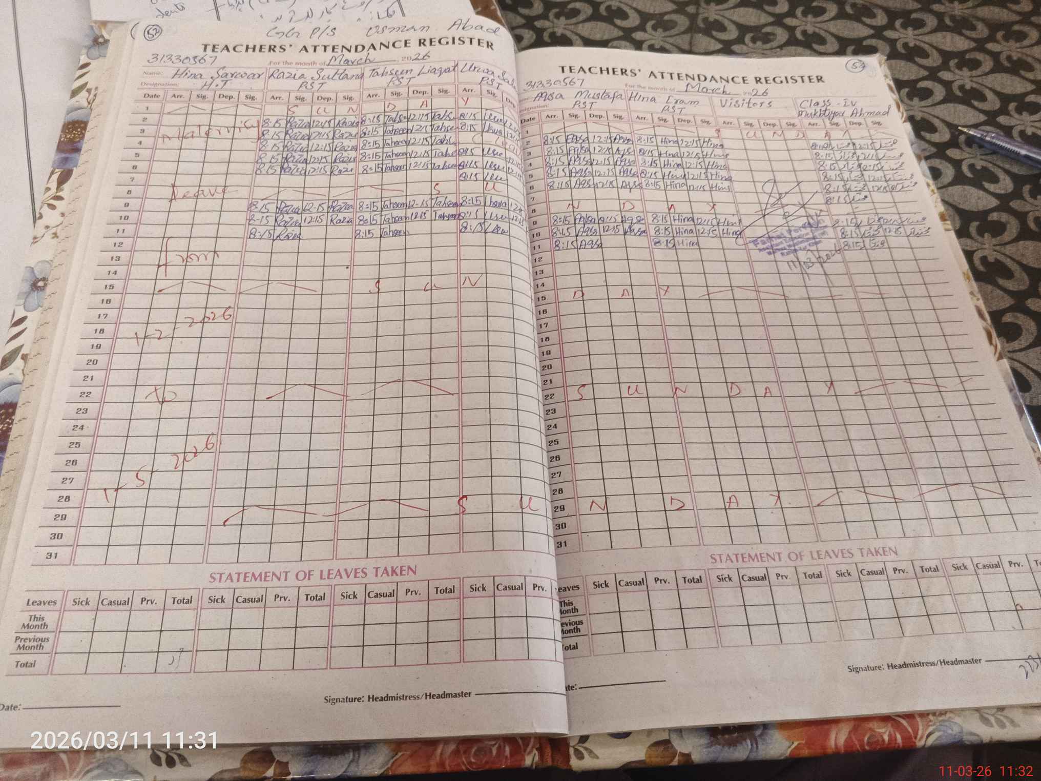 | EMIS Code: 31330567 | Name of School: GGPS USMAN ABAD | |||