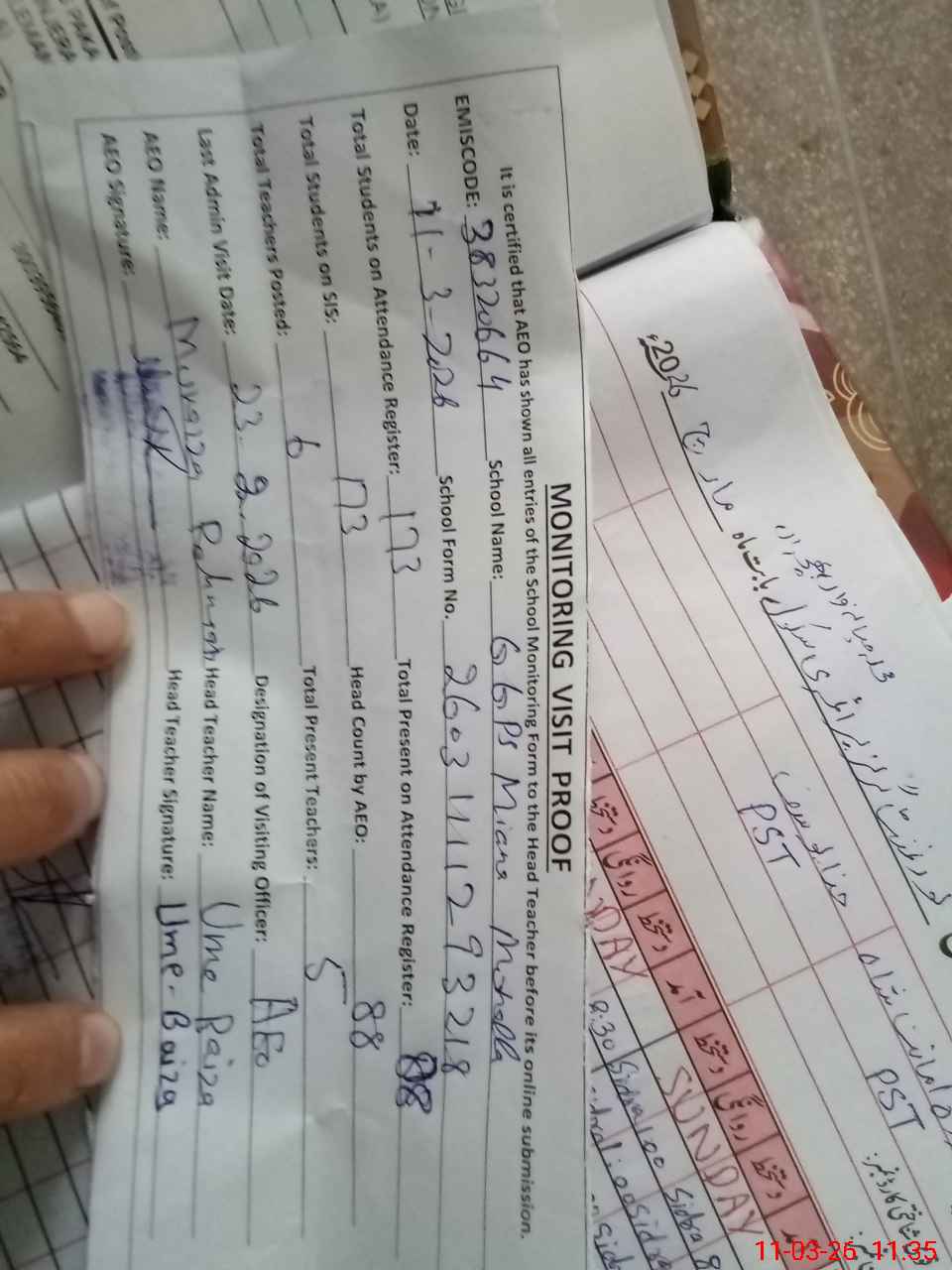 | Certified that this School was Inspected by the Undersigned MEA/DMO Today and the Information Stated Above is as Per Record. | |||||