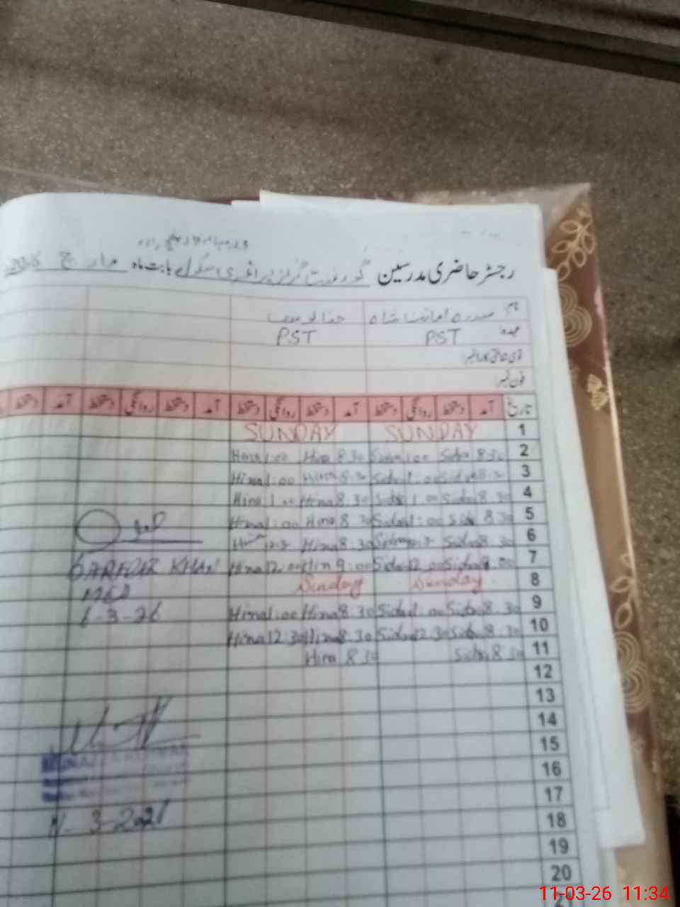 | 38**** | As**** Ha**** | PST Arts | Regular | 0 | 0 | 0 | 0 | 0 | 0 | 0 | 0 | 0 | Exam Duty |