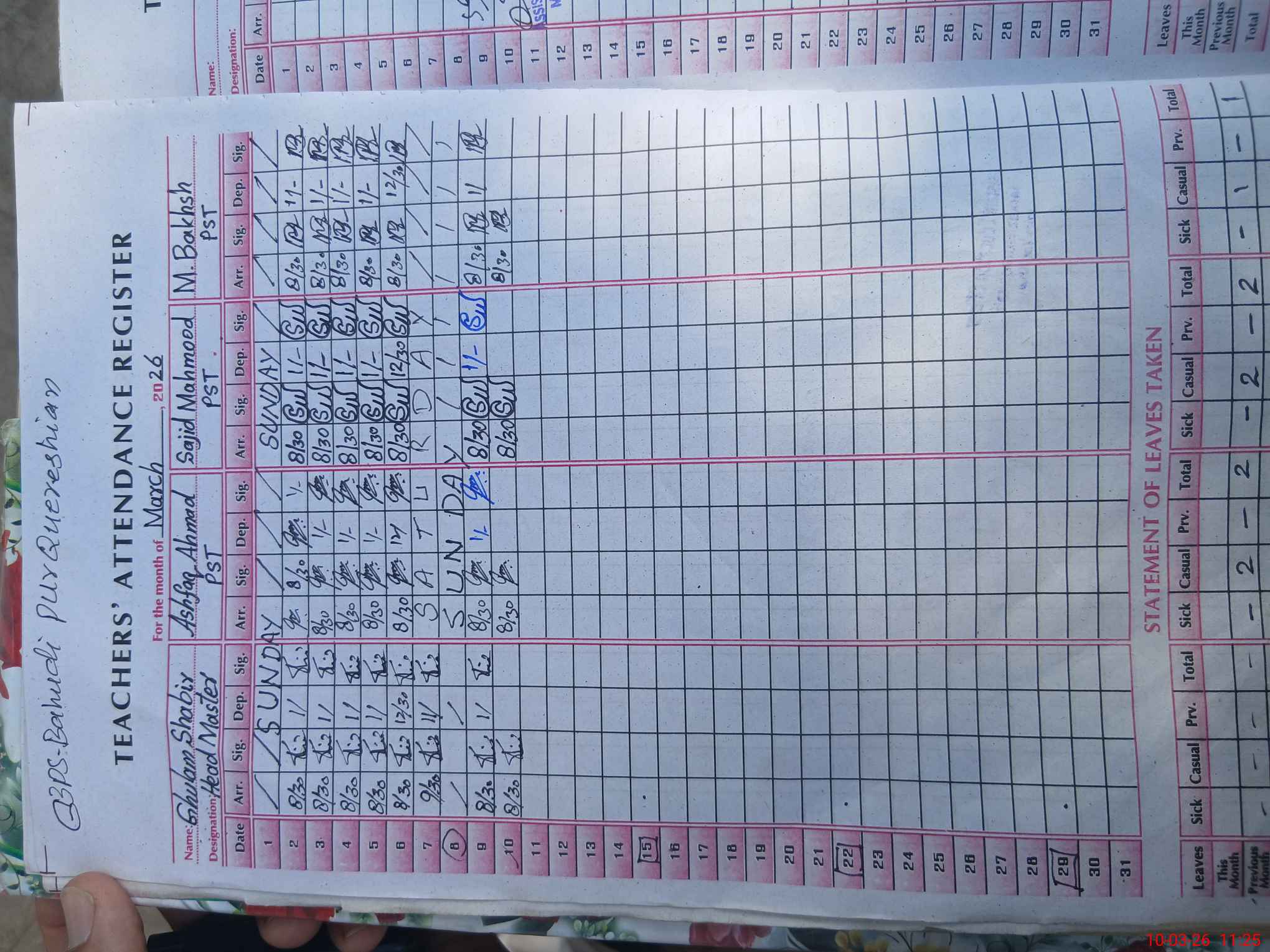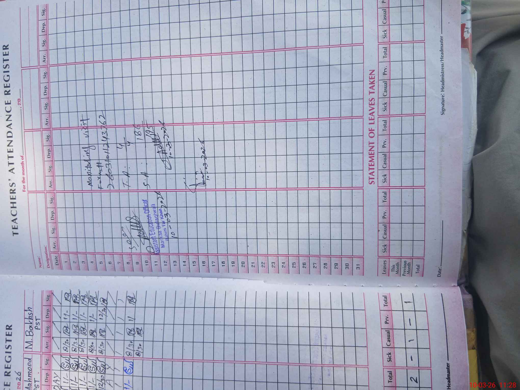 | Name: Gh**** Sh**** Designation: (School Headmaster's/Headmistress's) PST/PTC/JV Phone/Cell Number: 03**** |