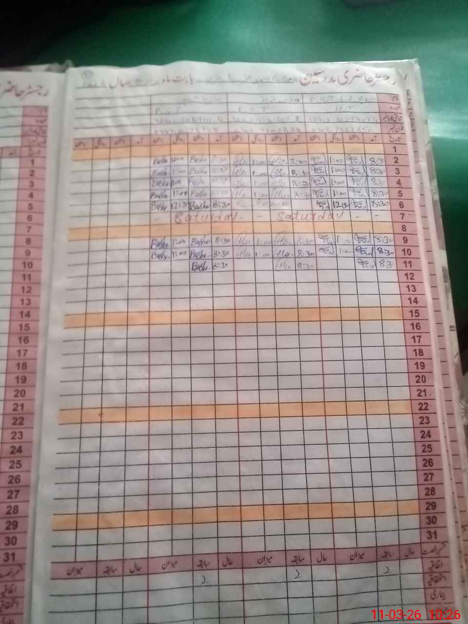 | CNIC | Full Name | Designation | R/C | Absence During Last Calender Month |