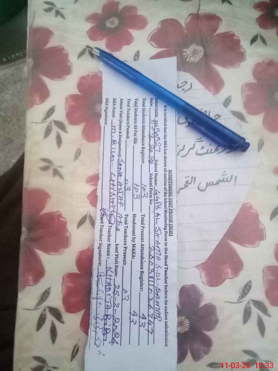 | Attendance Register | Head Teacher | MEA with School | Visit Proof |