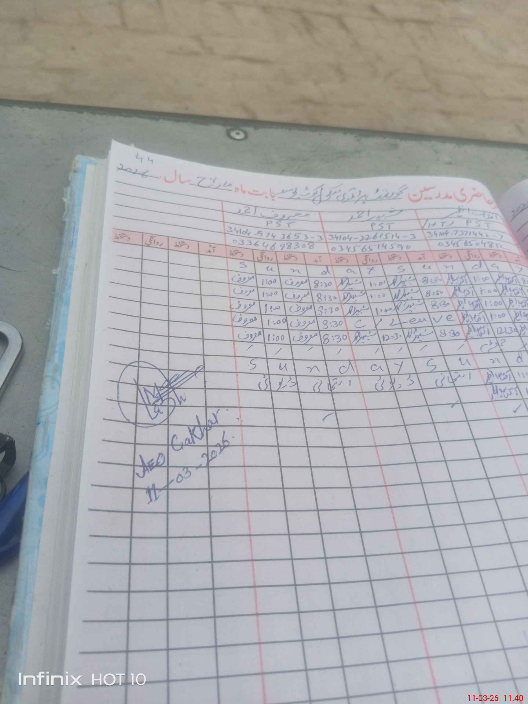 | Name: AF**** AZ**** Designation: (School Headmaster's/Headmistress's) PST Phone/Cell Number: 03**** |
