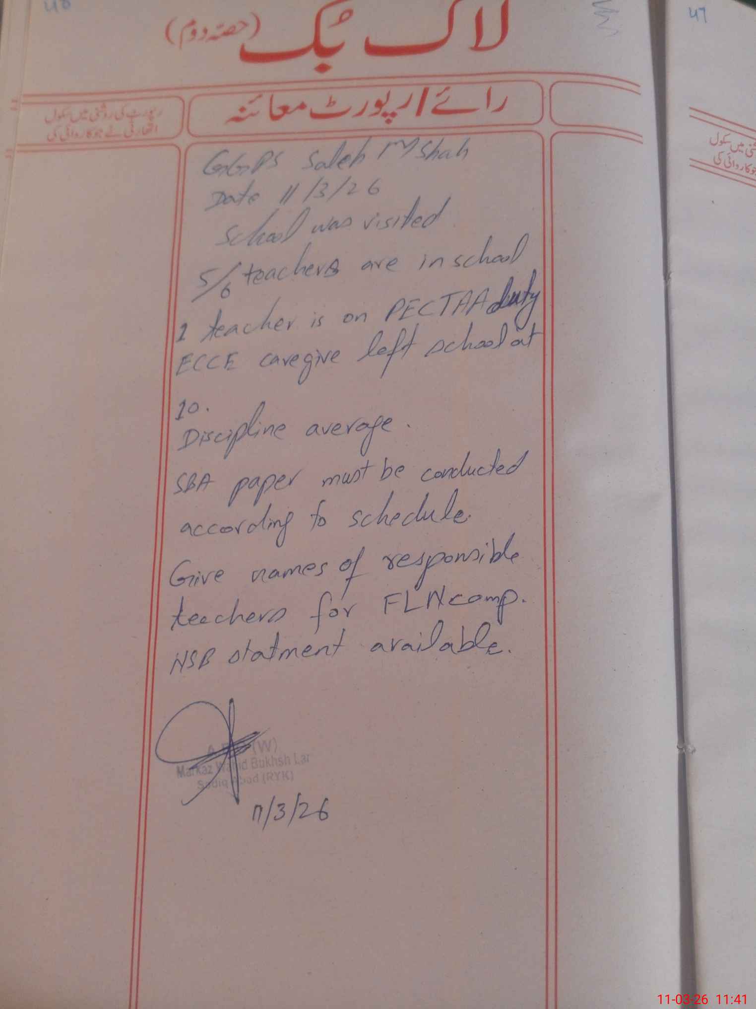 | Certified that this School was Inspected by the Undersigned MEA/DMO Today and the Information Stated Above is as Per Record. | |||||