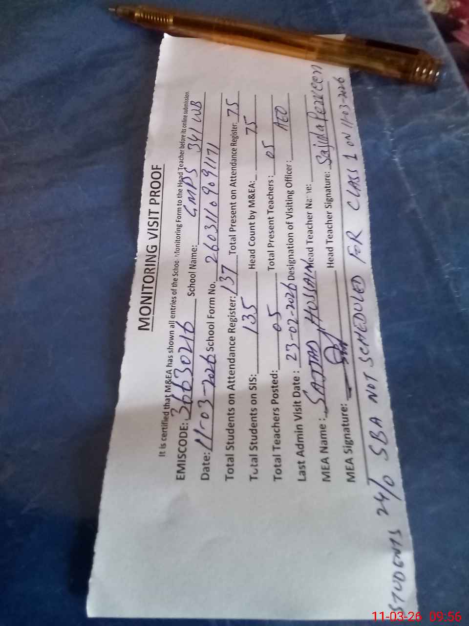 | Certified that this School was Inspected by the Undersigned MEA/DMO Today and the Information Stated Above is as Per Record. | |||||