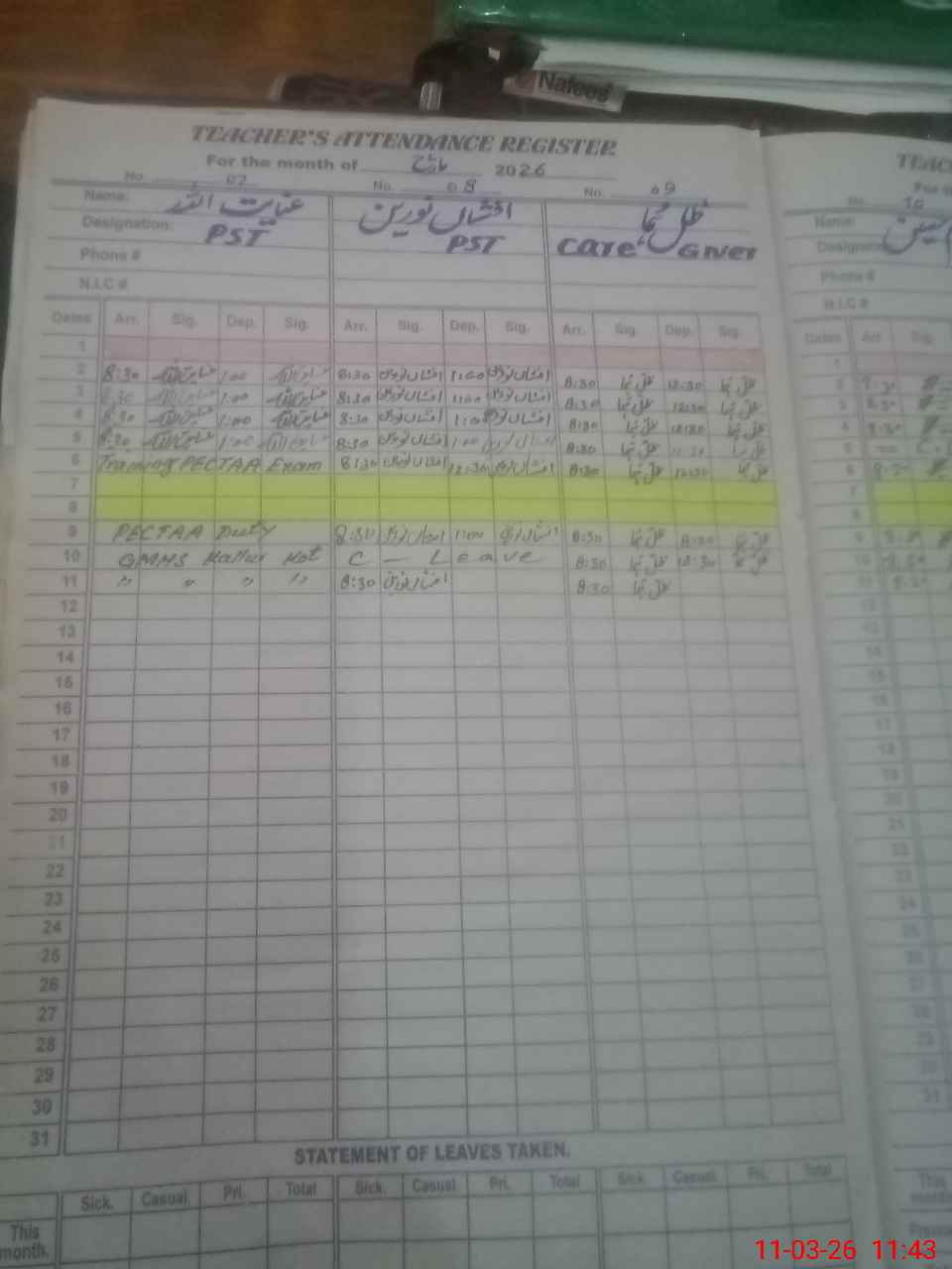 | 38**** | Mu**** Ai**** UlHa**** | PST Arts | Regular | 0 | 0 | 0 | 0 | 0 | 0 | 0 | 0 | 0 | Exam Duty |
