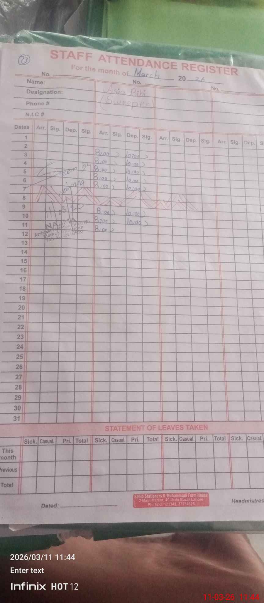 | Name: Na**** Pa**** Designation: (School Headmaster's/Headmistress's) Ese Phone/Cell Number: 03**** |