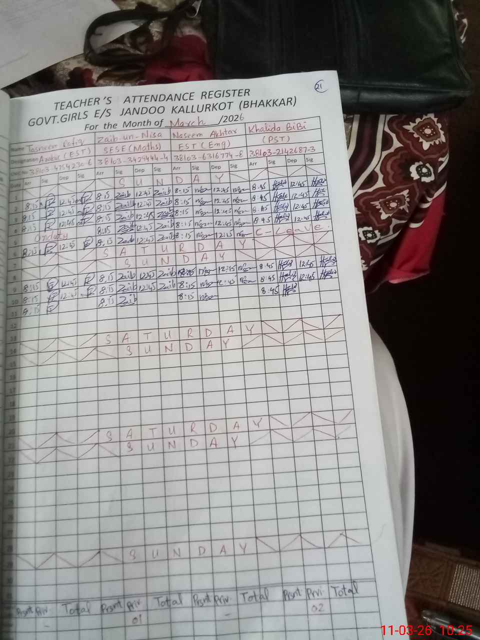 | Remarks (Use Separate Page if Required): AEO visit on Log book was 25 February however on teacher attendance register 16 & 25 February 2026 NSB record register not maintain properly | |||||