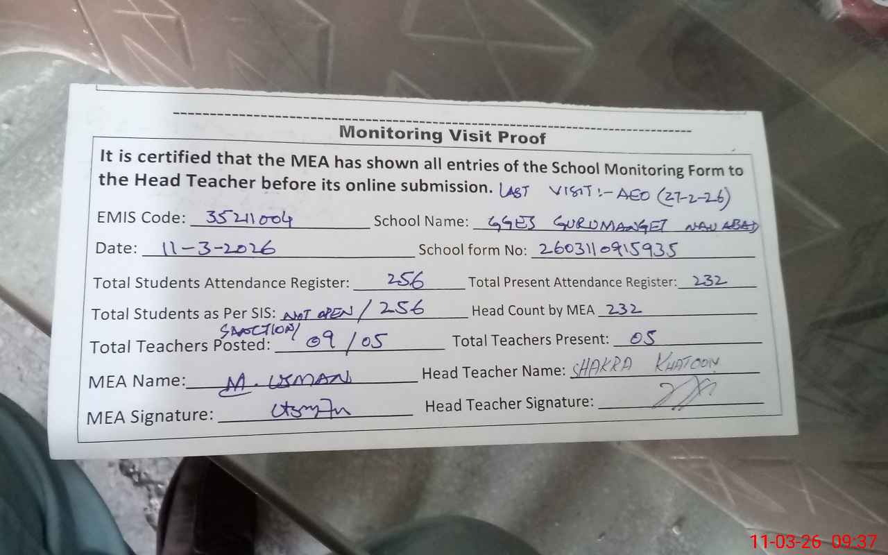 | EMIS Code: 35211004 | Name of School: GGES GURUMANGET NAU ABAD | |||