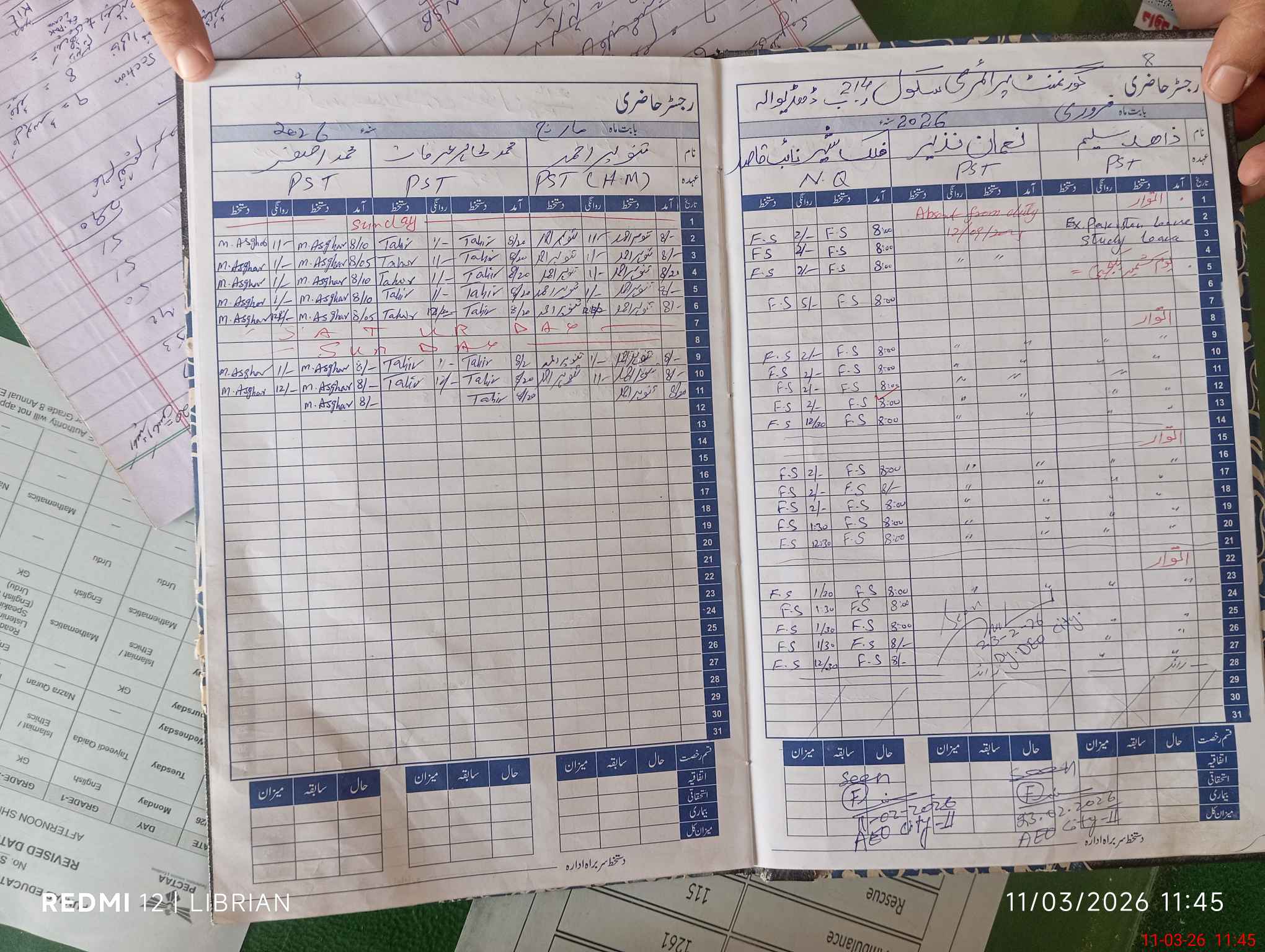 | 33**** | Ab**** Ra**** | PST Arts | Regular | 0 | 0 | 0 | 0 | 0 | 0 | 0 | 0 | 0 | Exam Duty |