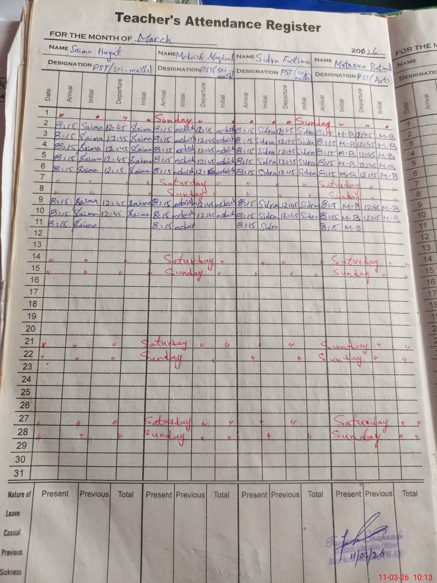 | Name: Sa**** Ha**** Designation: (School Headmaster's/Headmistress's) PST Phone/Cell Number: 03**** |