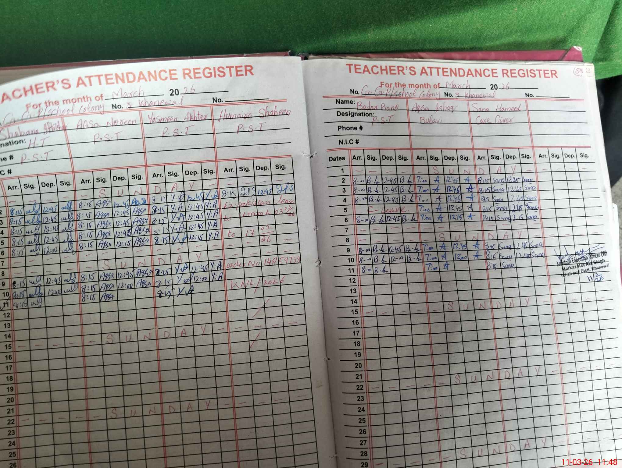 | Name: Sh**** If**** Designation: (School Headmaster's/Headmistress's) PST Phone/Cell Number: 03**** |