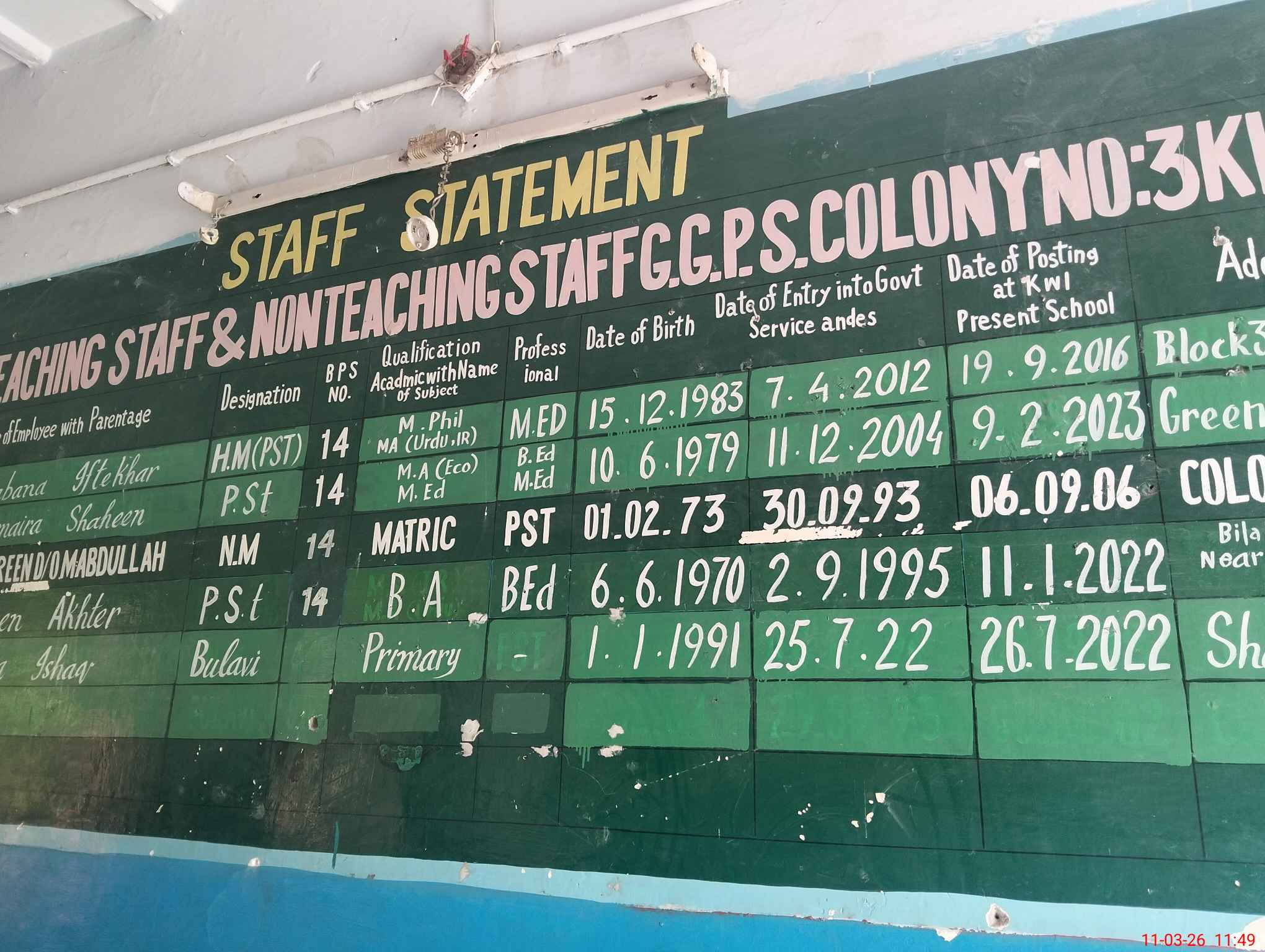 | EMIS Code: 36420358 | Name of School: GGPS COLONY NO.3 KHANEWAL | |||