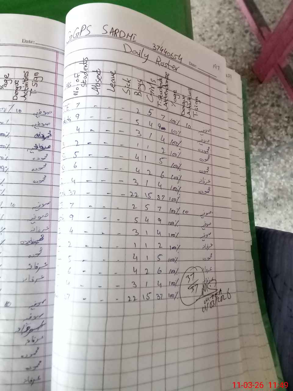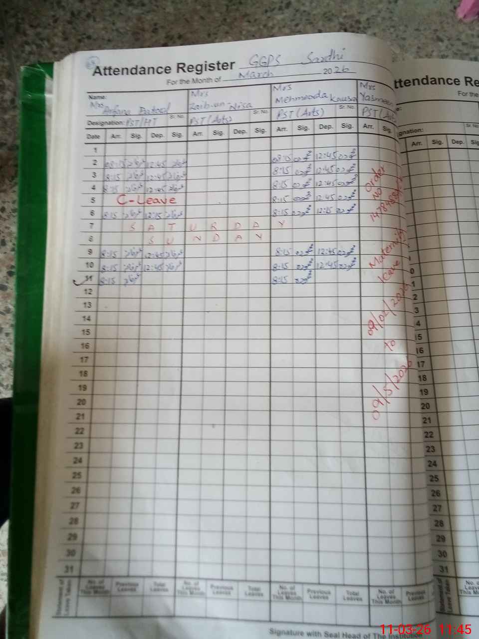 | 37**** | Ya**** Ak**** | PST Arts | Regular | 0 | 0 | 0 | 0 | 0 | 0 | 0 | 0 | 0 | Maternity |