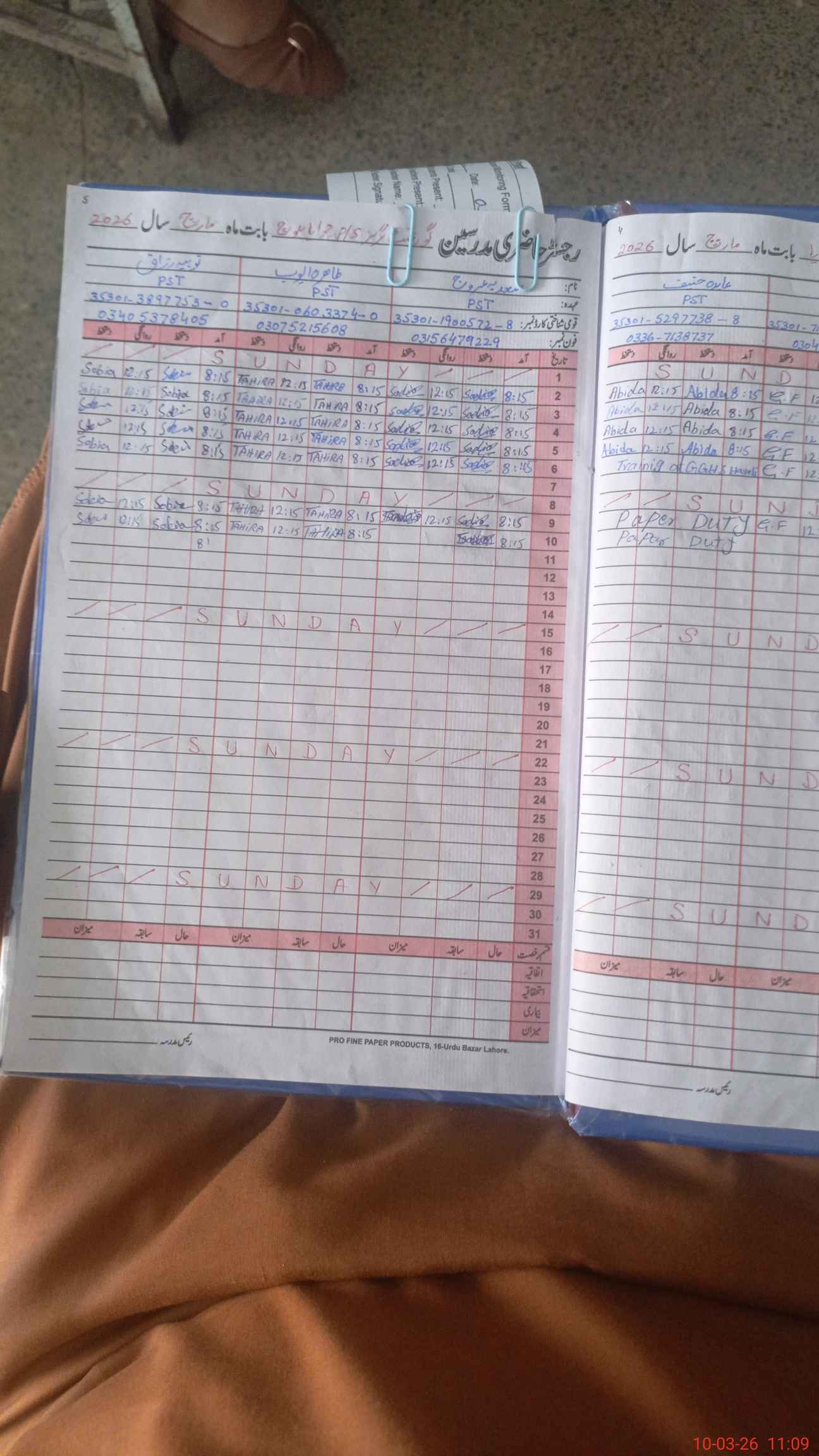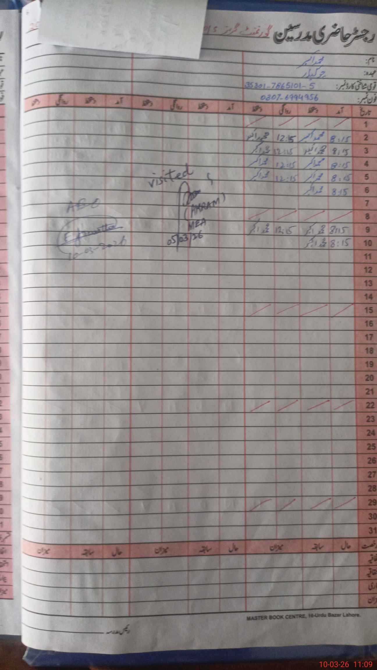 | Name: MA**** FA**** Designation: (School Headmaster's/Headmistress's) PST Phone/Cell Number: 03**** |