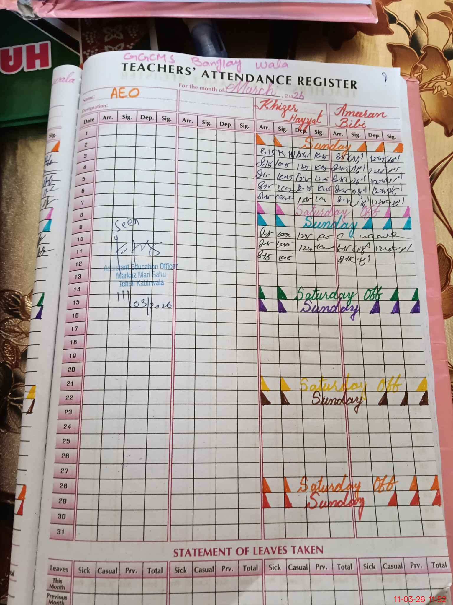 | District: KHANEWAL | Tehsil: KABIRWALA | Markaz: MARI SAHU - FEMALE | Level: Primary | |