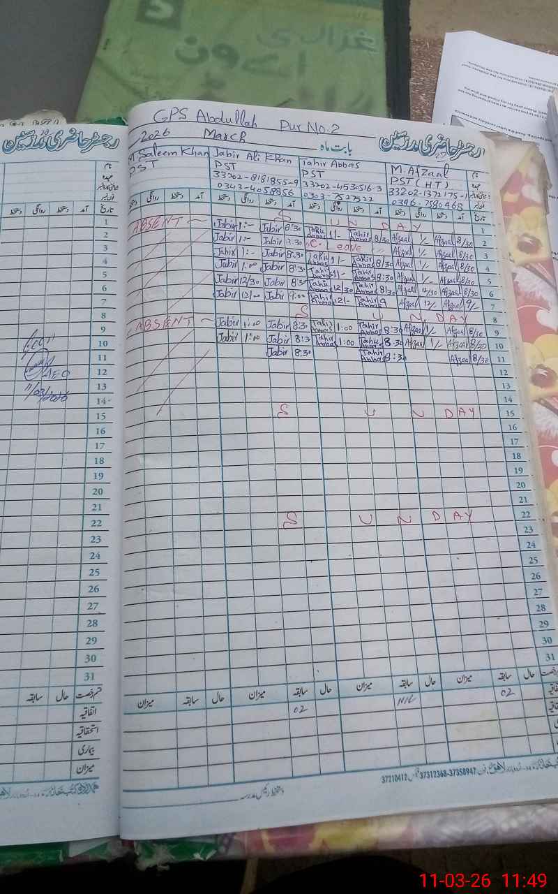 | EMIS Code: 33250185 | Name of School: GPS ABDULLAH PUR NO 2 | |||
