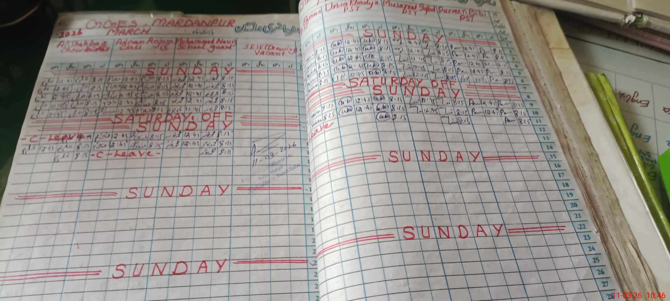 | 36**** | Ta**** Sh**** | EST Science | Regular | 0 | 0 | 0 | 0 | 0 | 0 | 0 | 0 | 0 | Exam Duty |